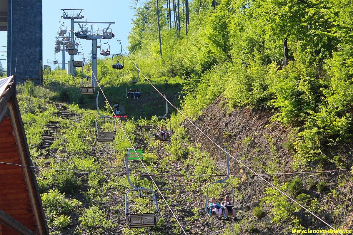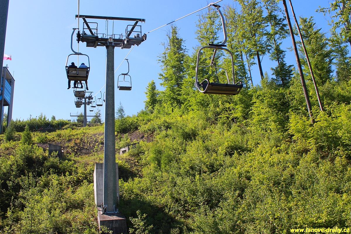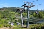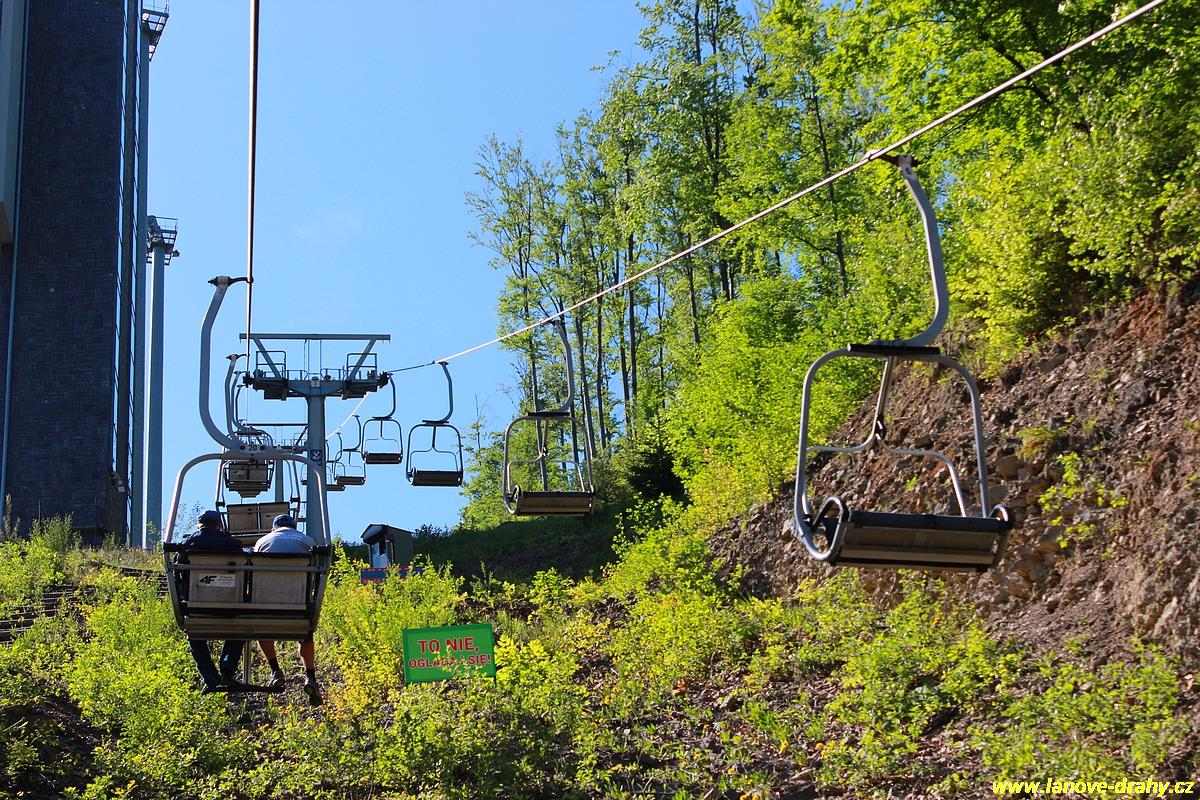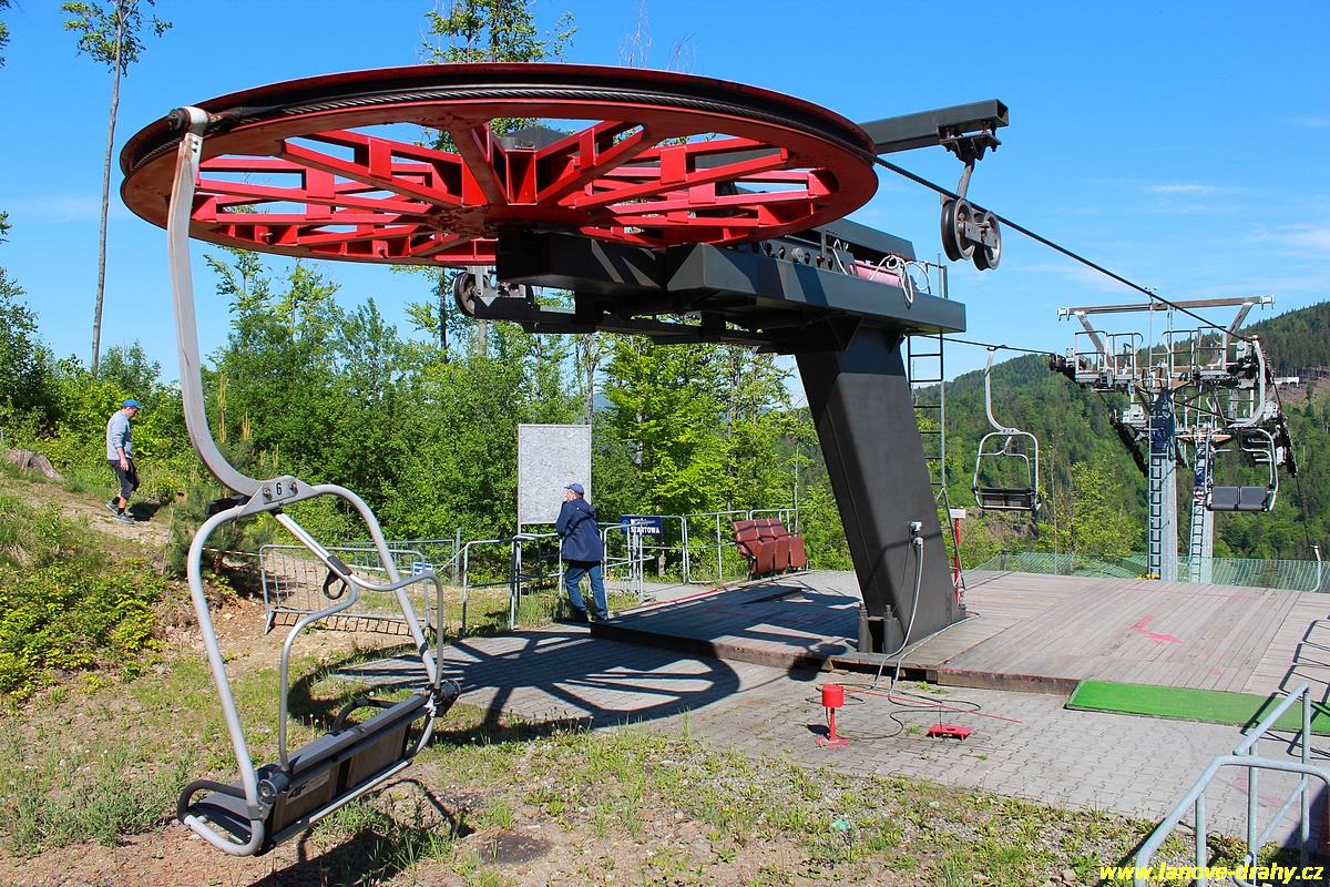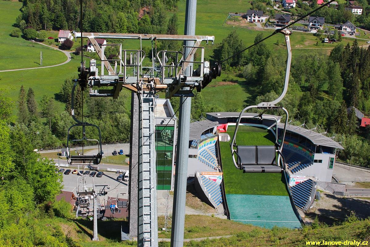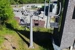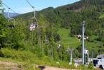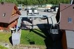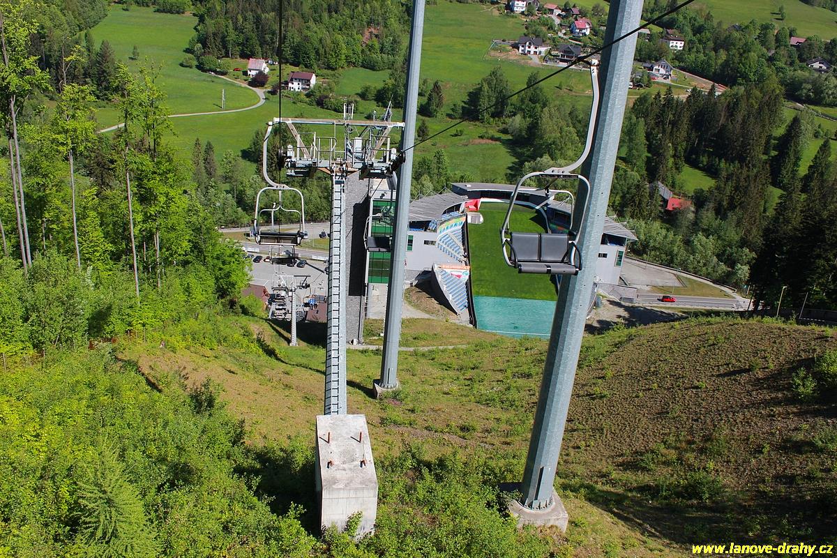 osobní visutá jednolanová dráha oběžného systému s pevným uchycením dvoumístných sedaček |