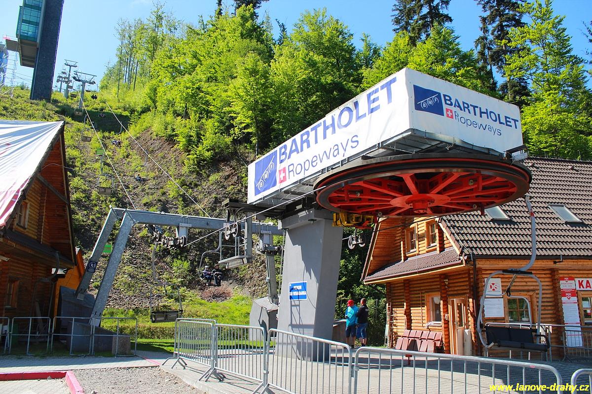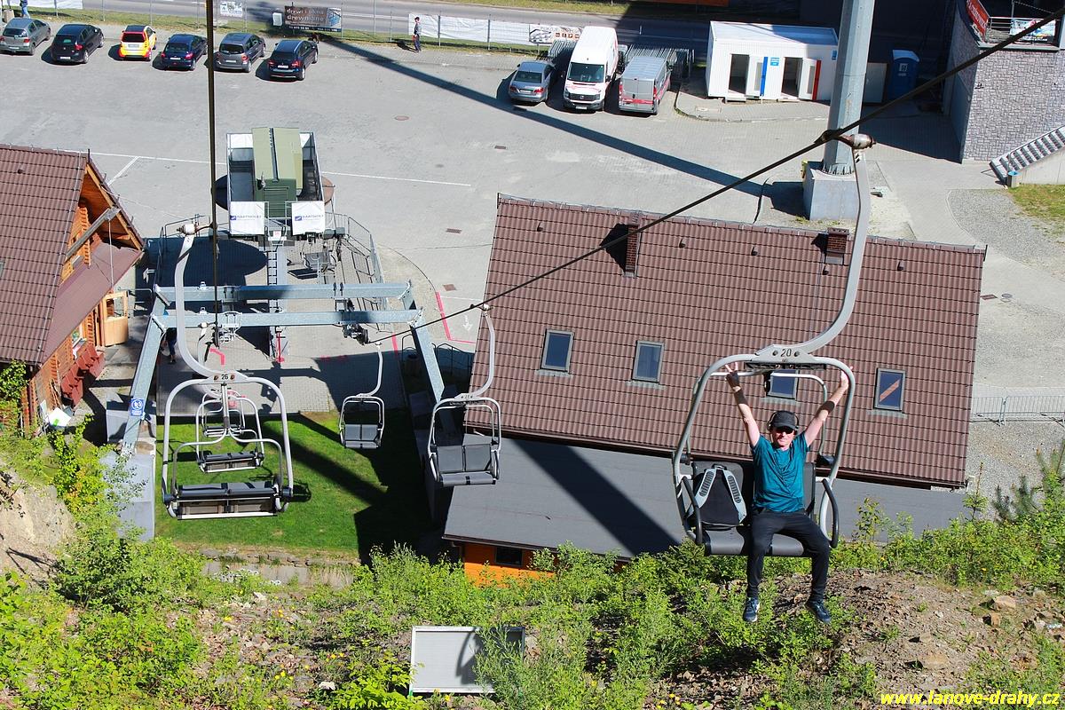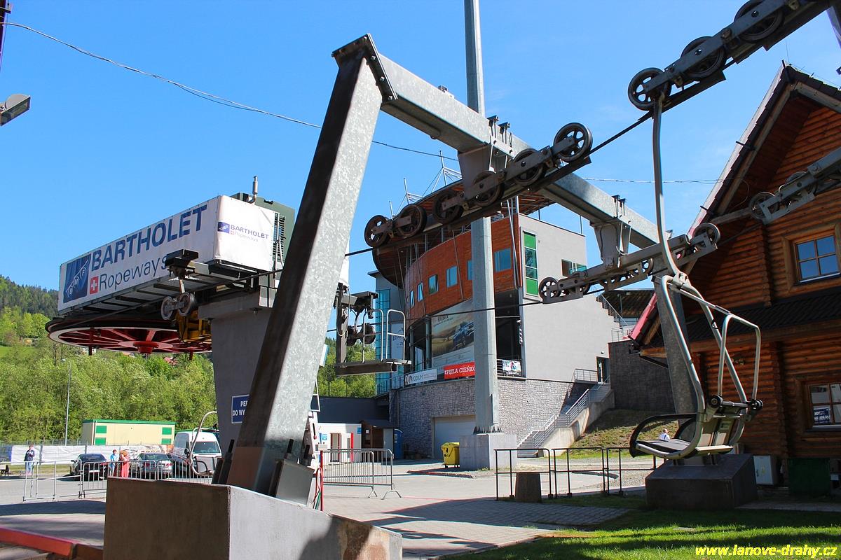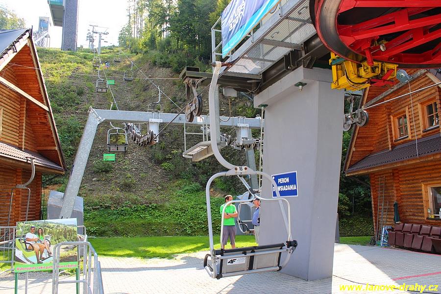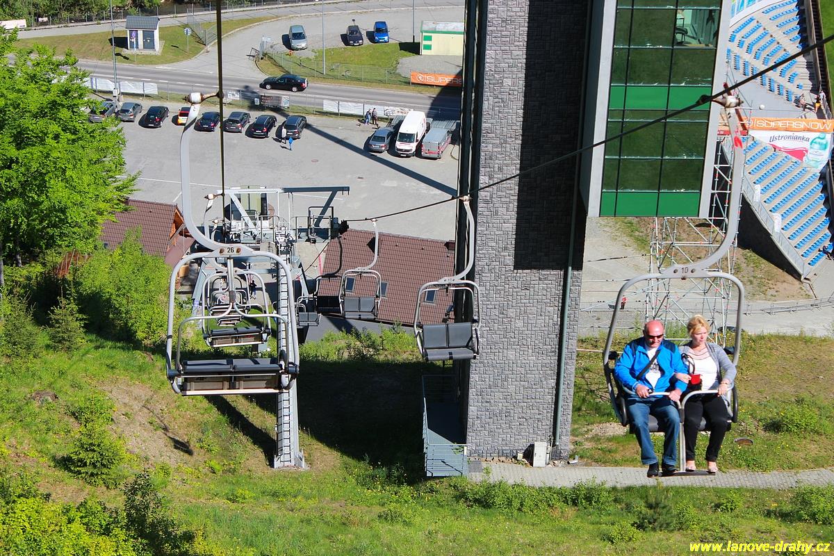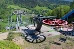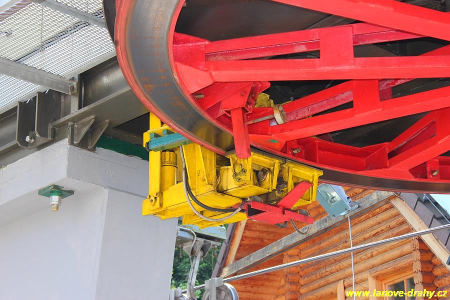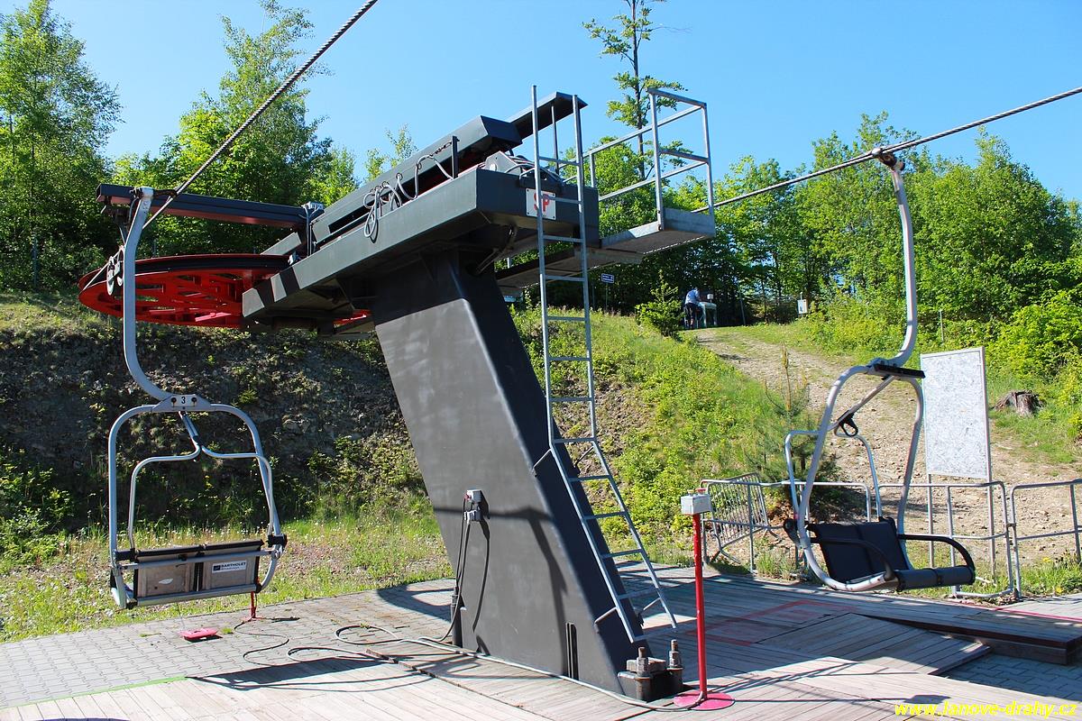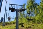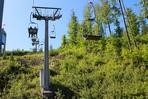 osobní visutá jednolanová dráha oběžného systému s pevným uchycením dvoumístných sedaček |