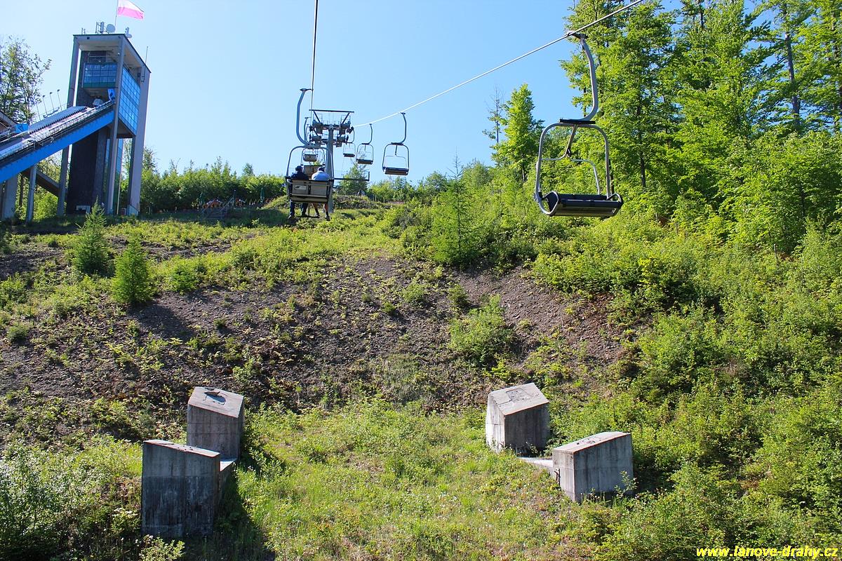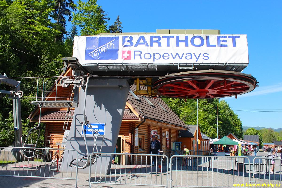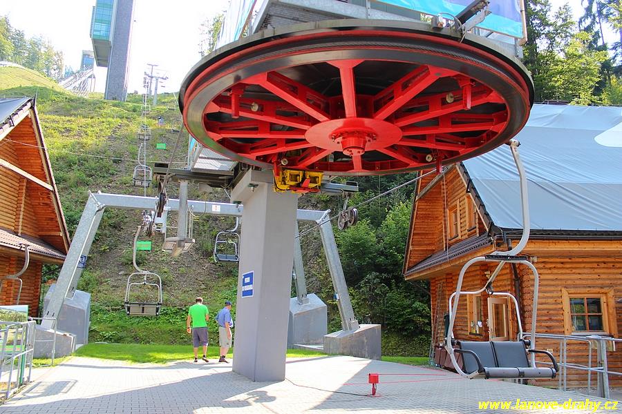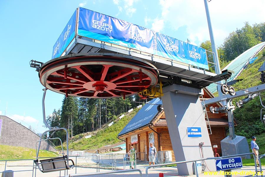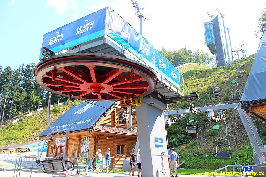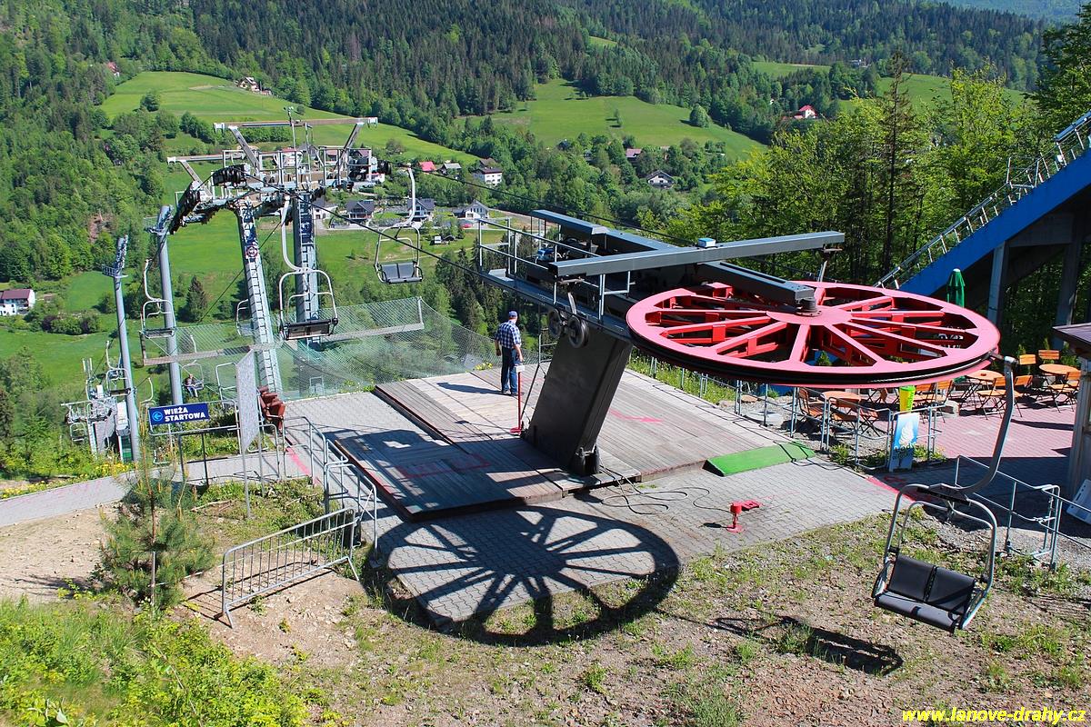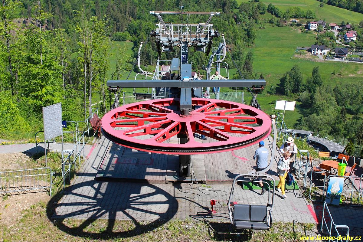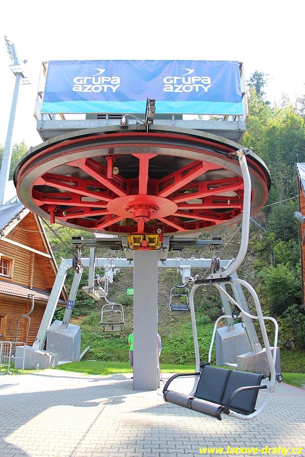 osobní visutá jednolanová dráha oběžného systému s pevným uchycením dvoumístných sedaček |