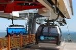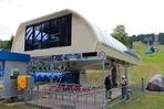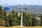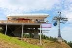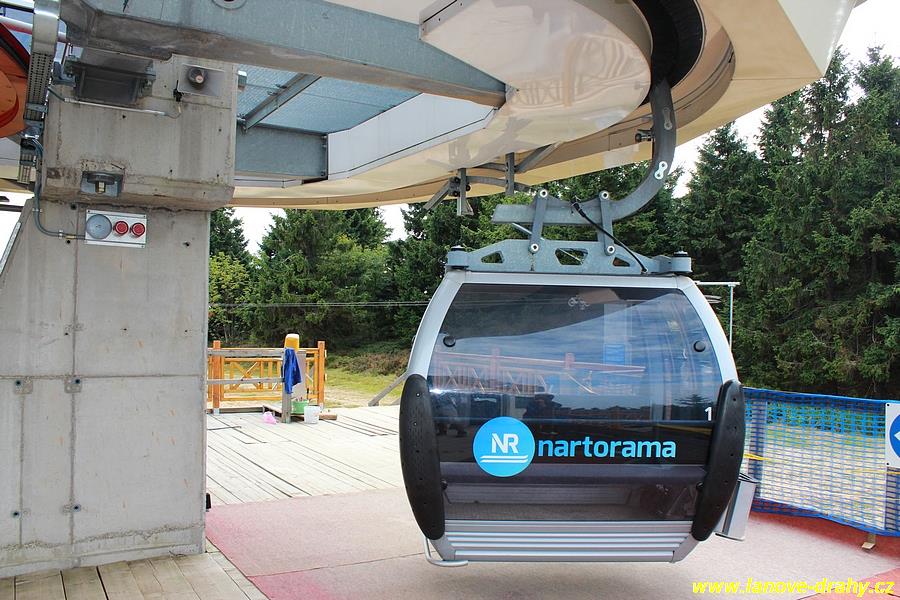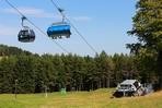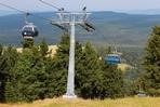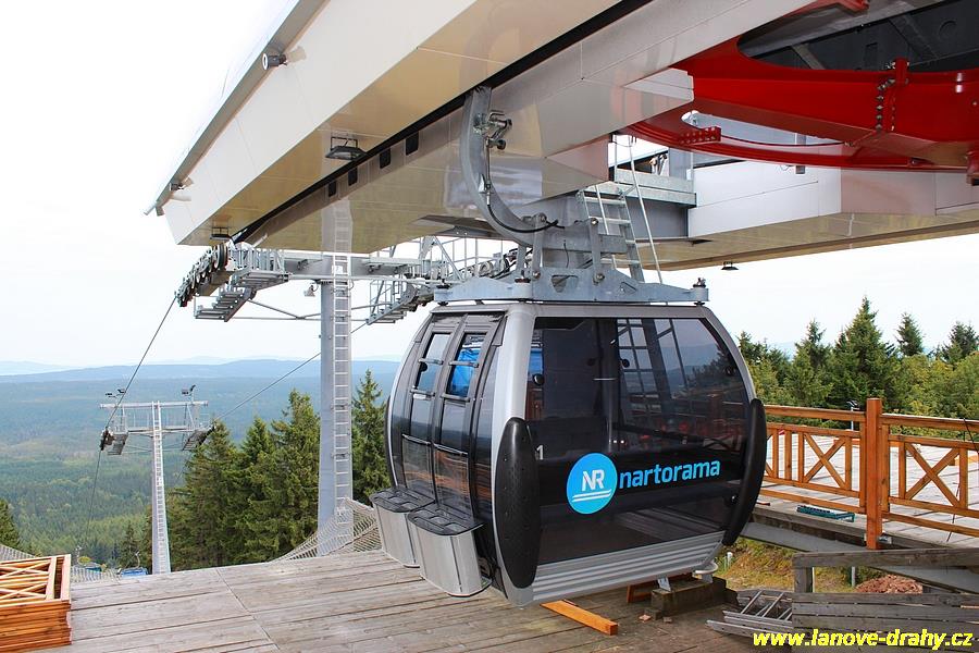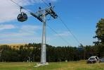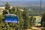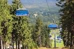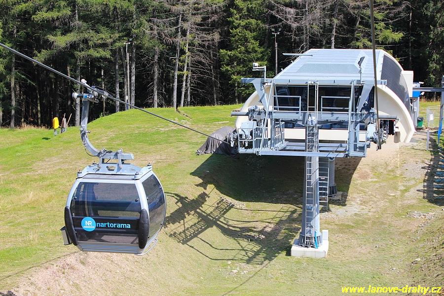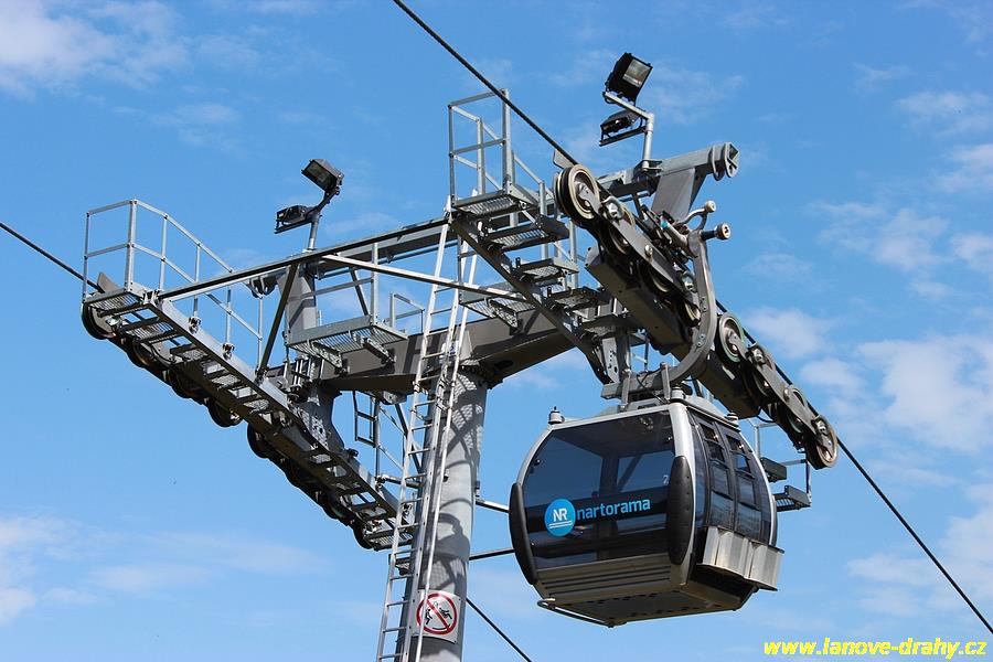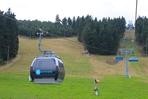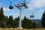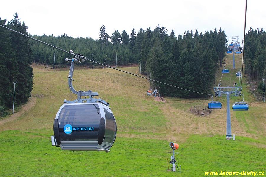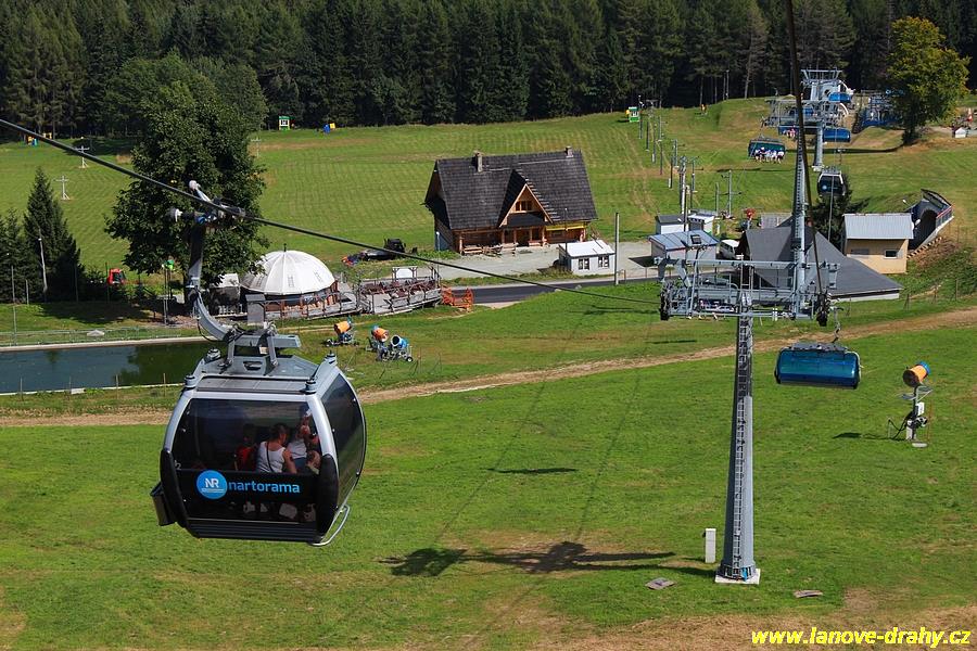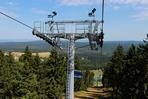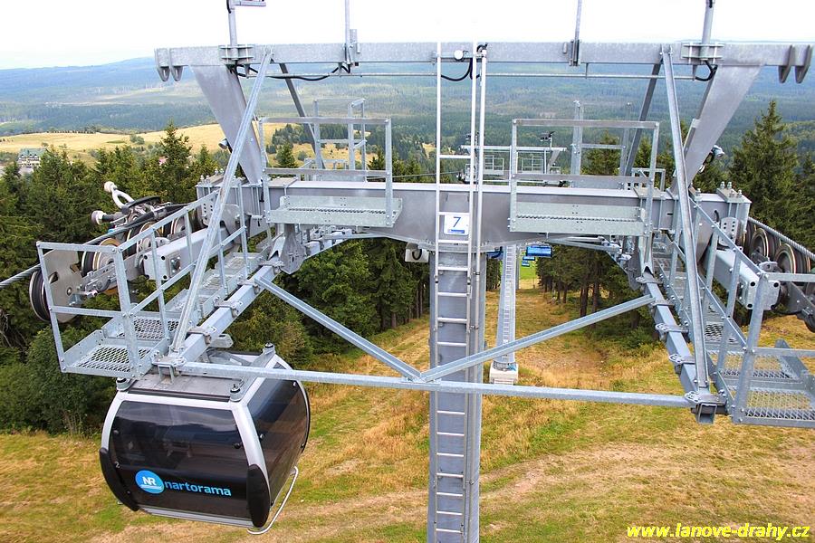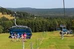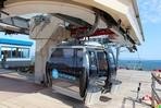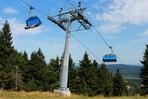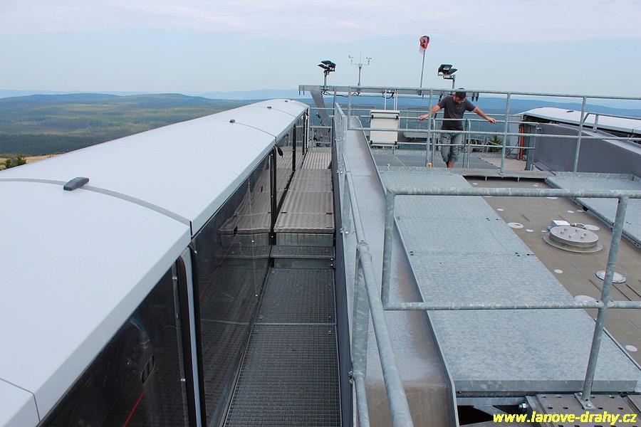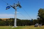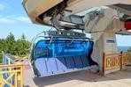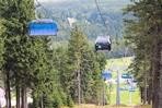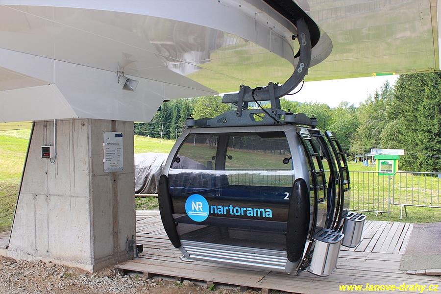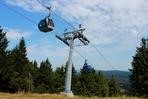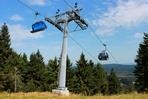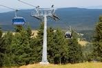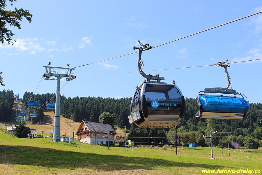 uchycením osmimístných kabinek a šestimístných sedaček s modrými bublinami |