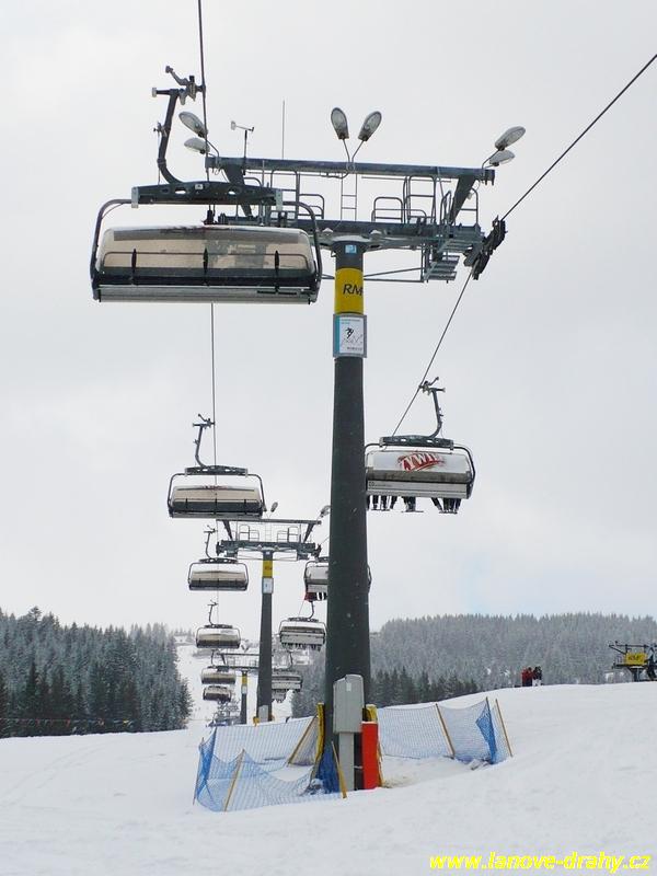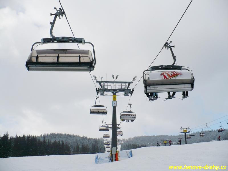 uchycením šestimístných sedaček s bublinami a s 90° výstupem |