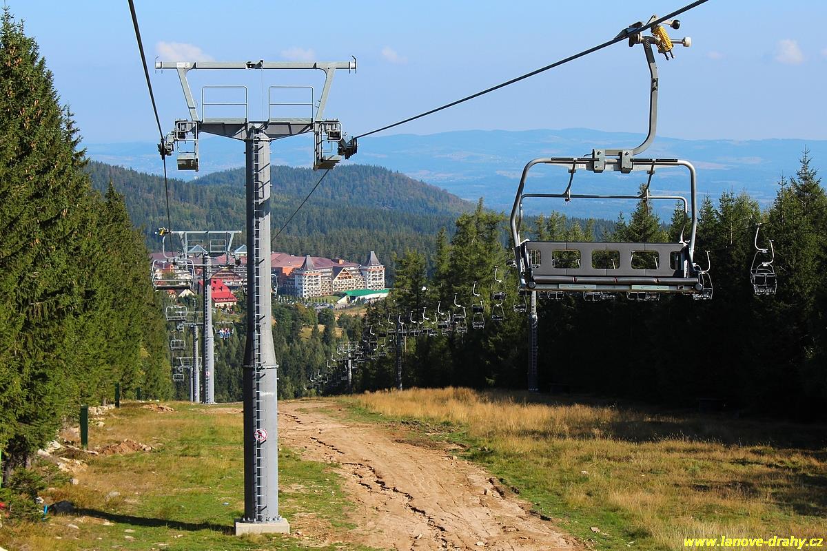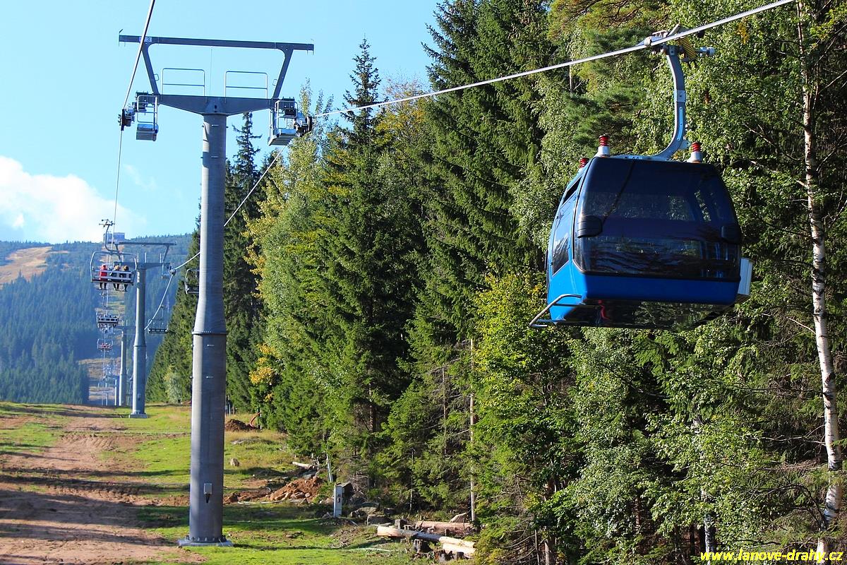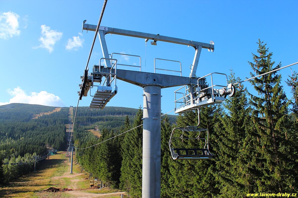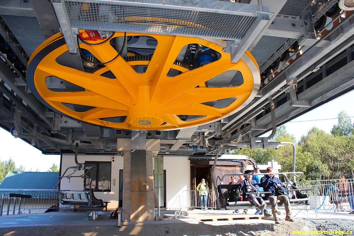uchycením osmimístných kabinek a čtyřmístných sedaček |