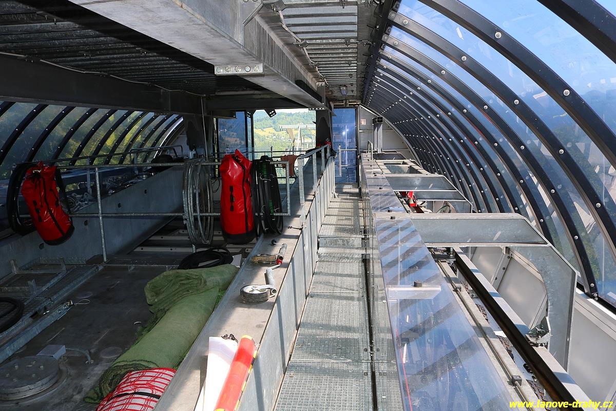 osobní visutá jednolanová dráha oběžného systému s odpojitelným uchycením čtyřmístných sedaček |