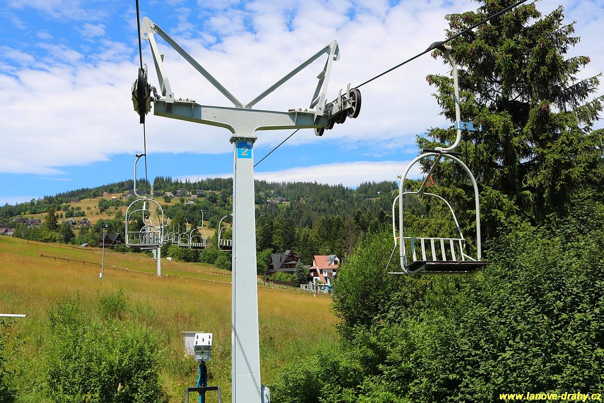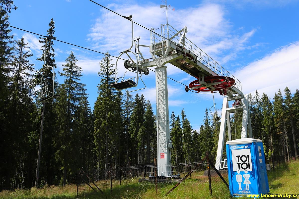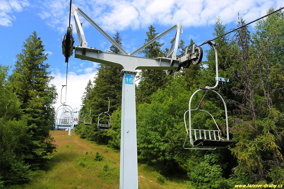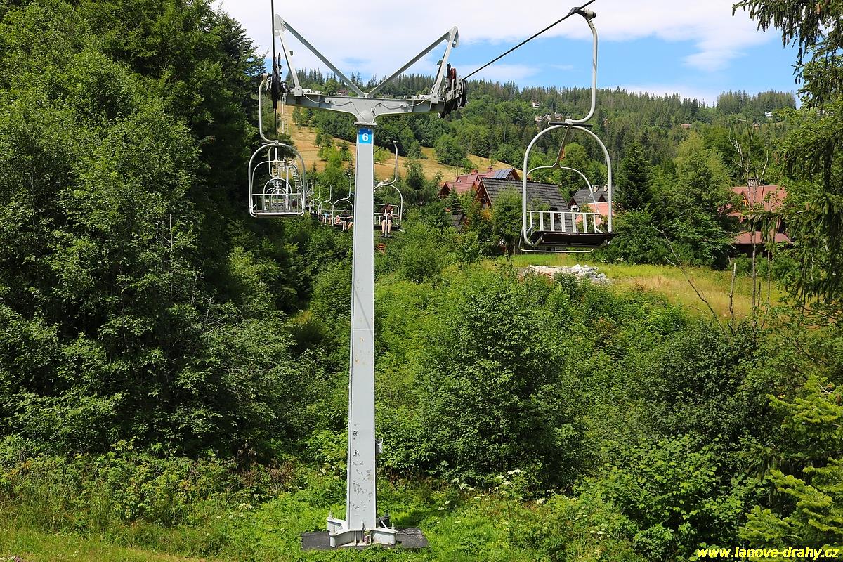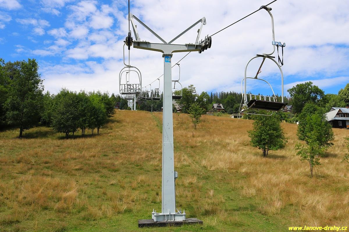 osobní visutá jednolanová dráha oběžného systému s neodpojitelným uchycením
