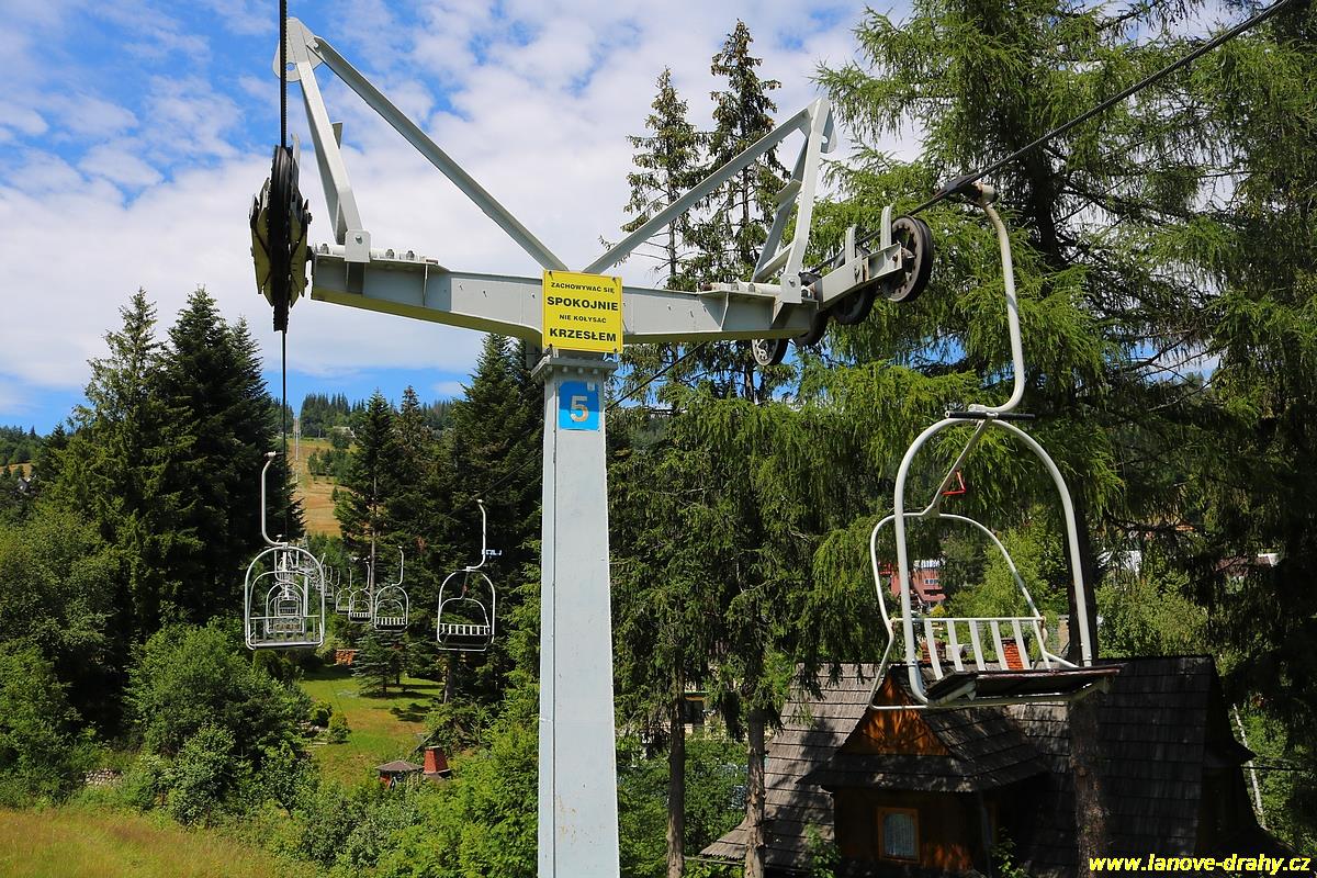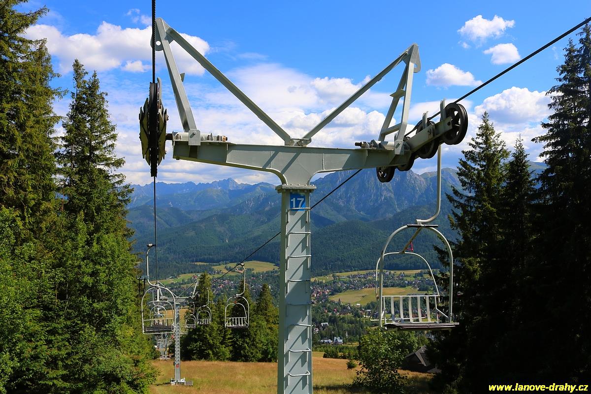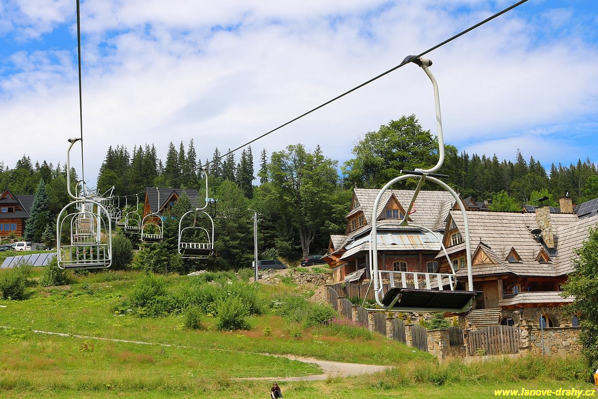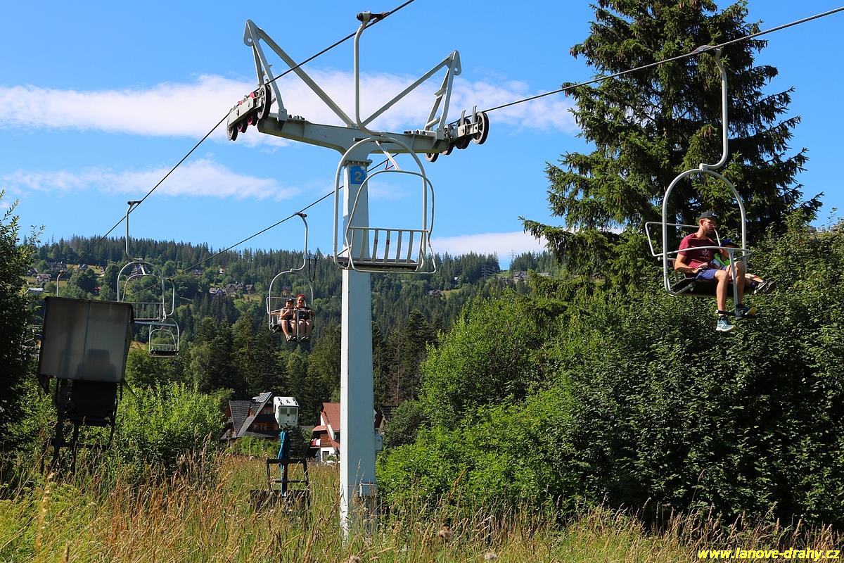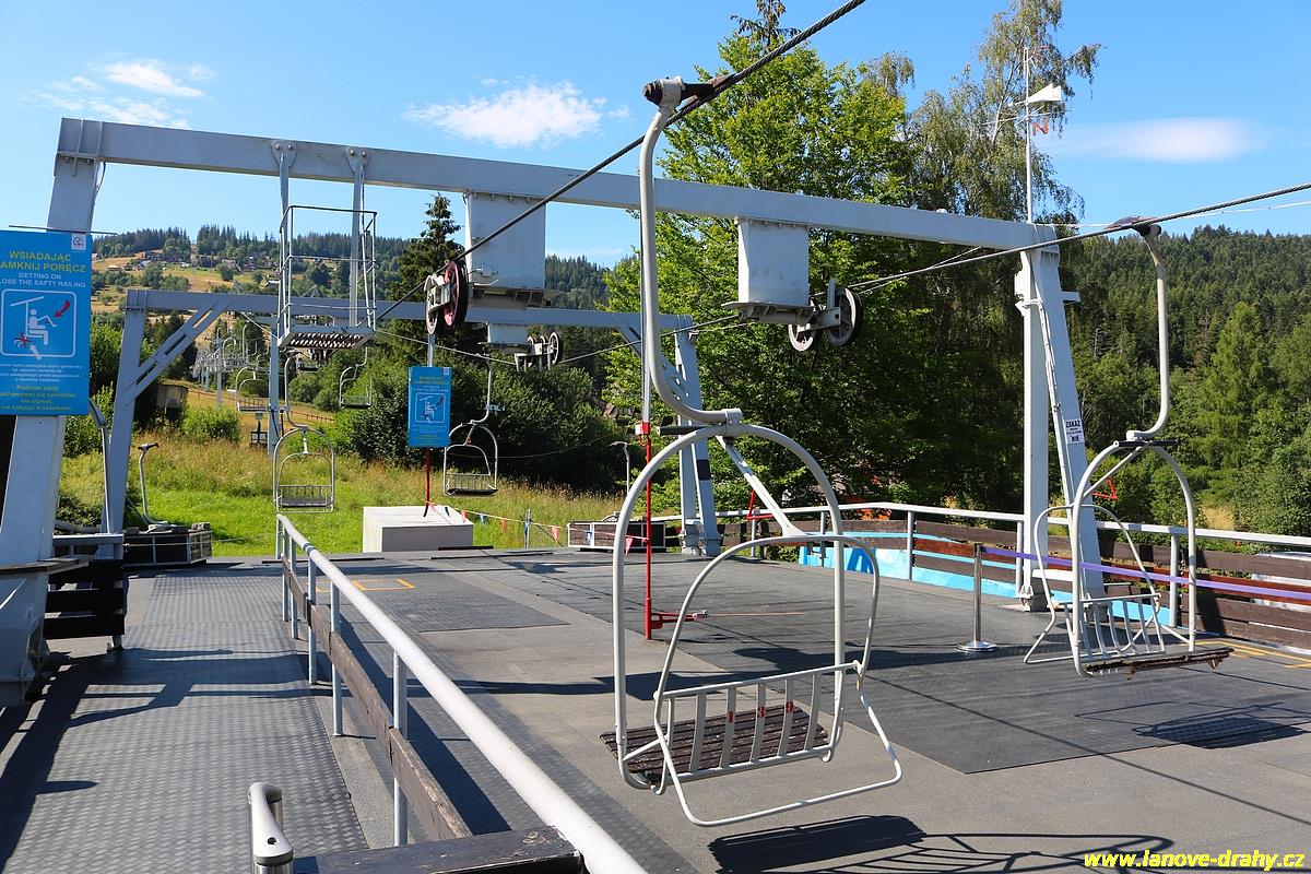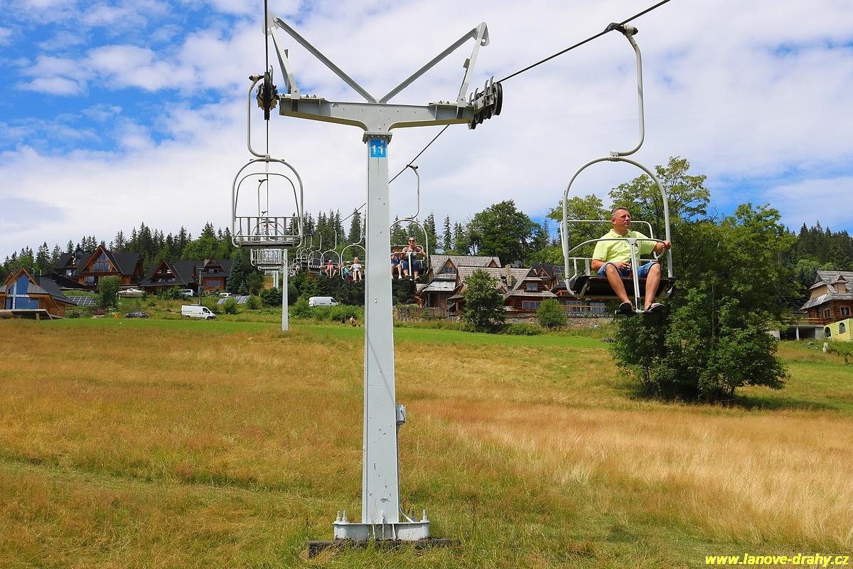 osobní visutá jednolanová dráha oběžného systému s neodpojitelným uchycením
