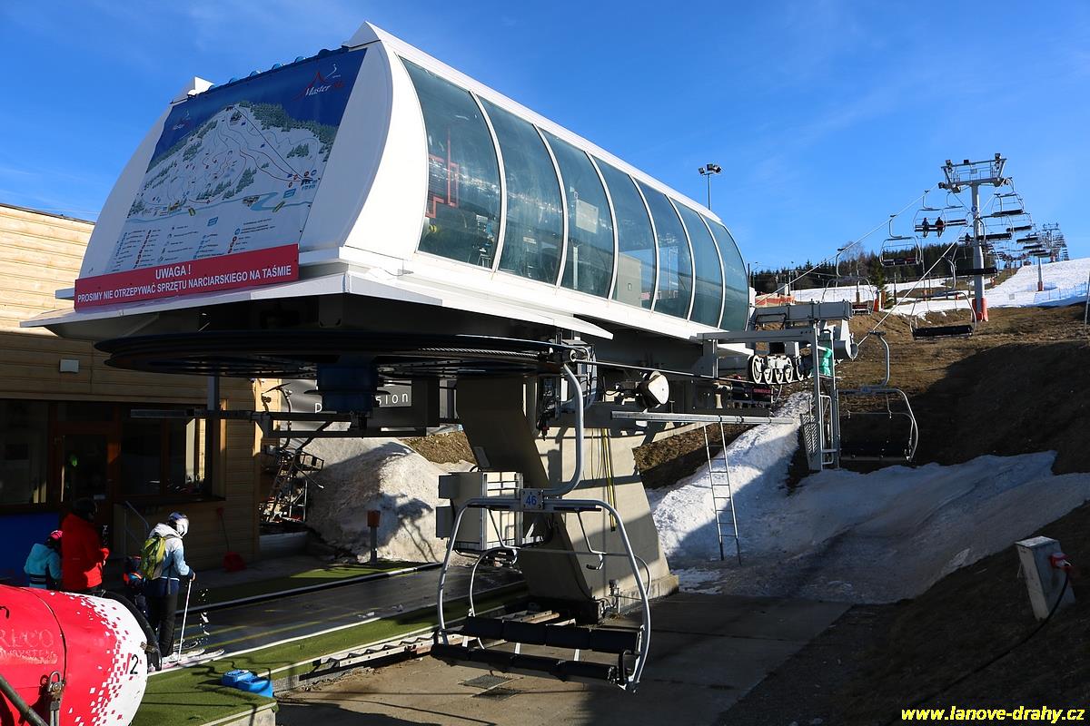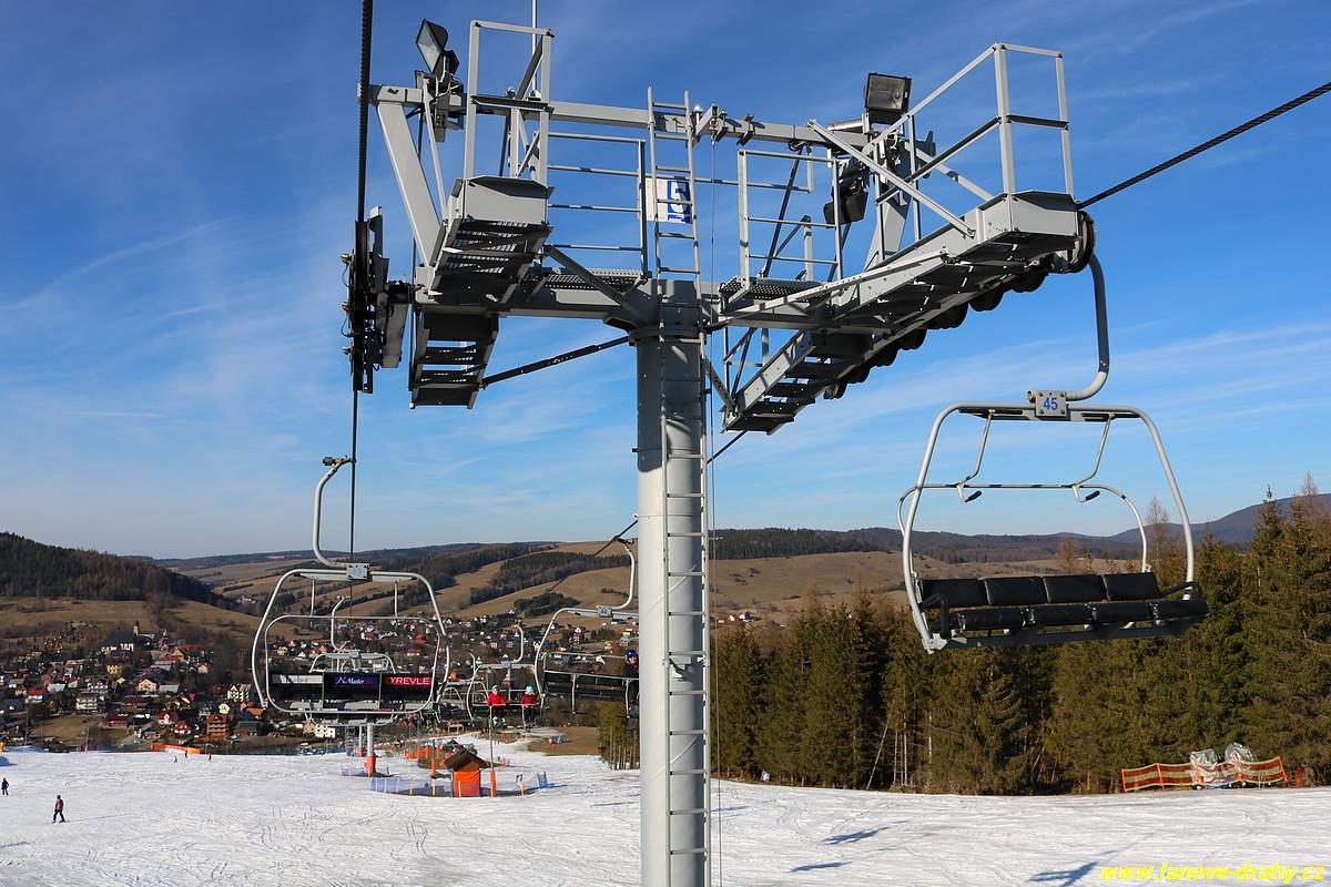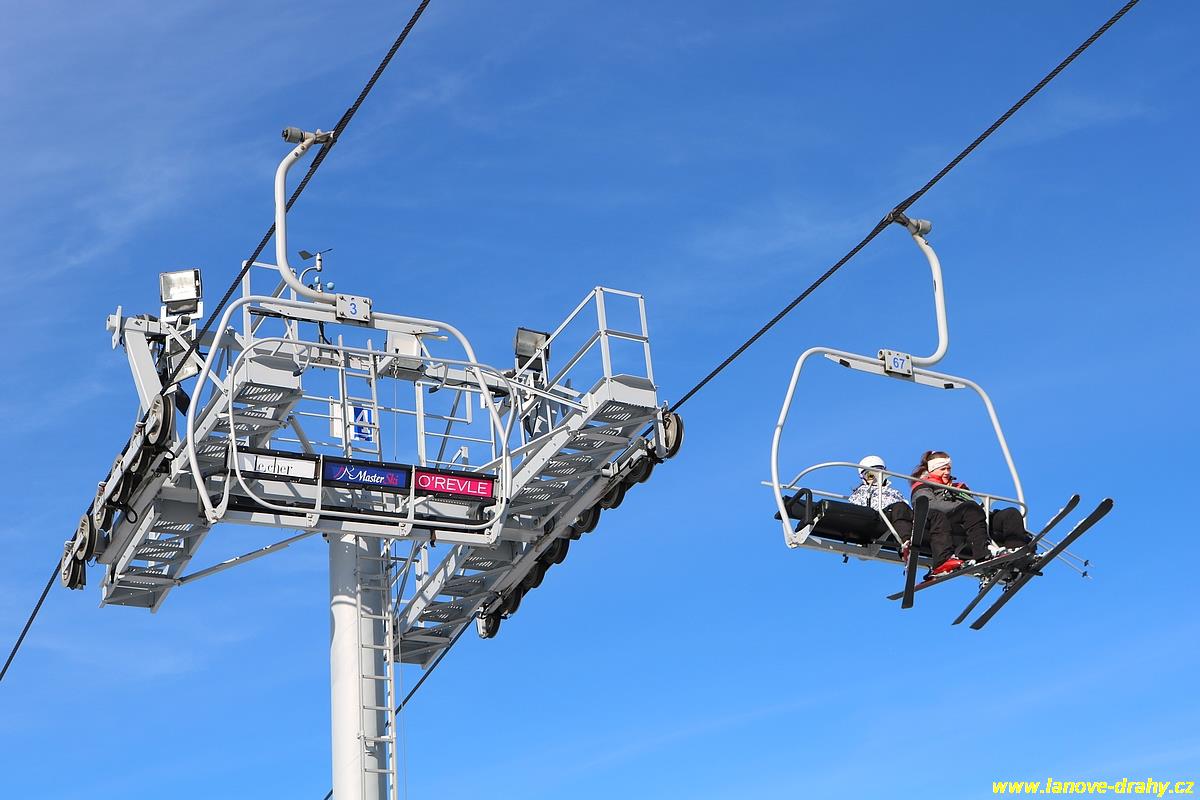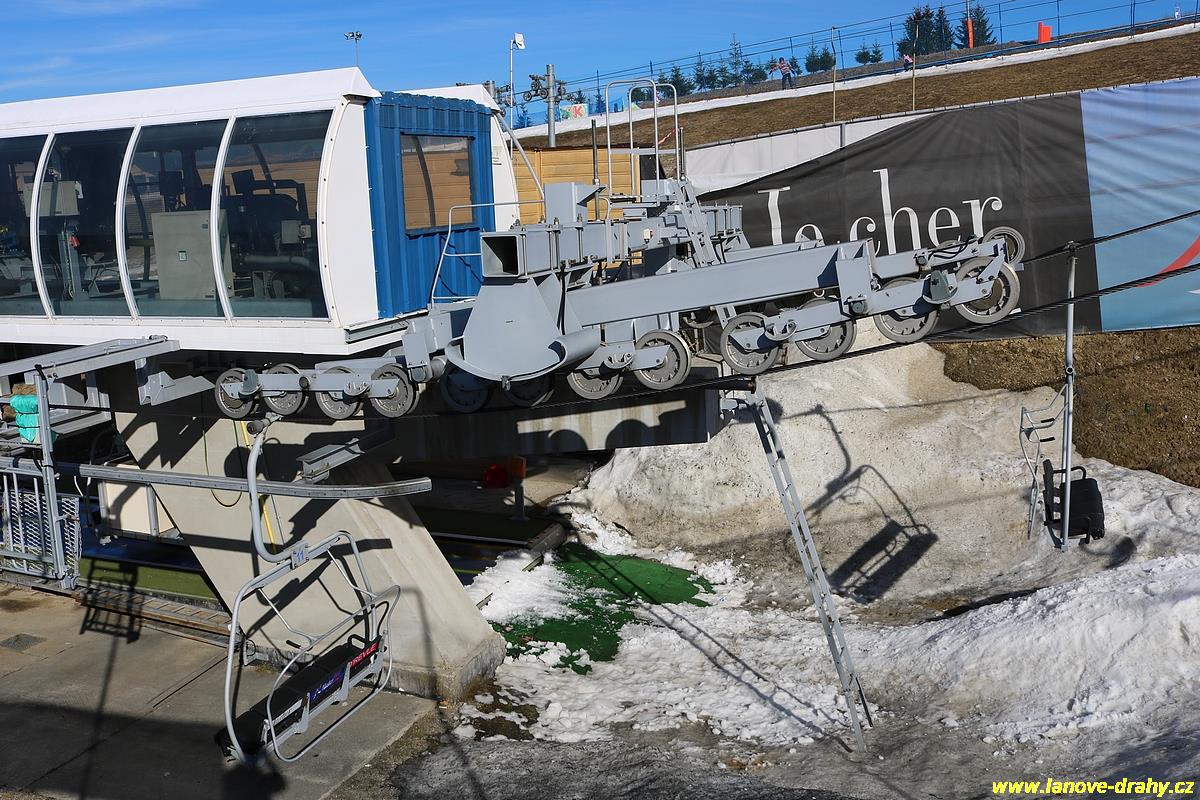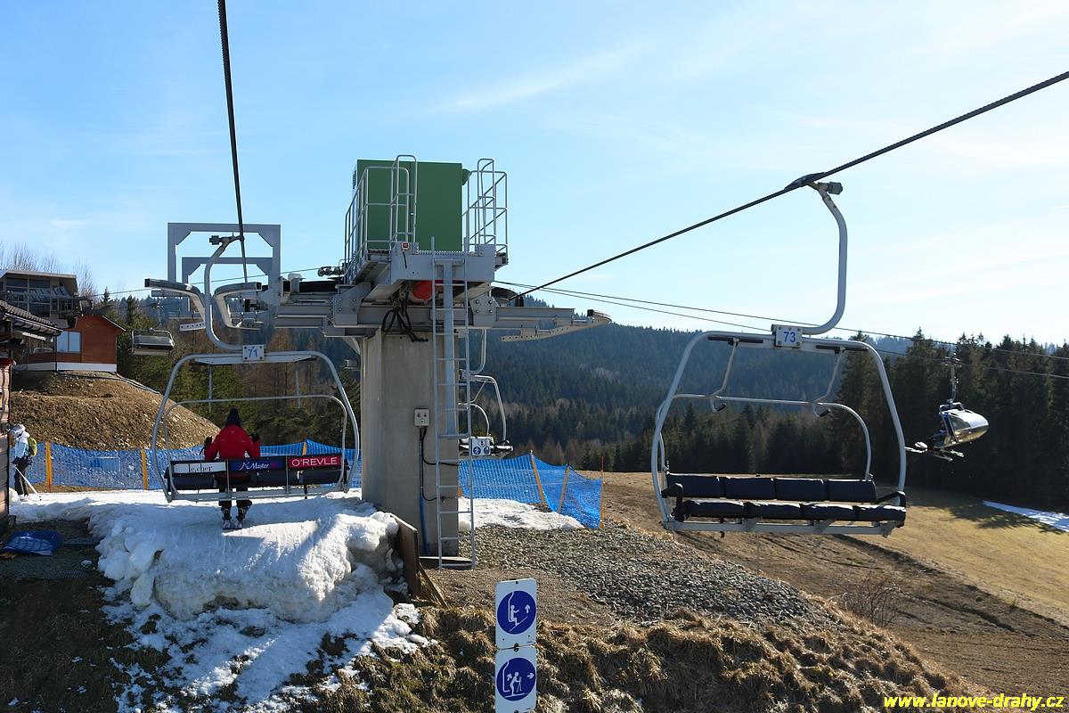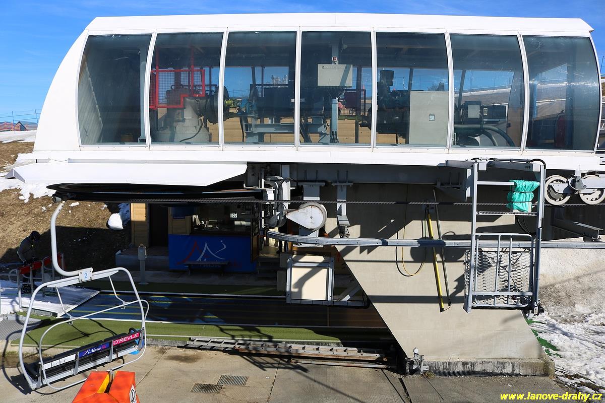 uchycením čtyřmístných sedaček a rozběhovým pásem |