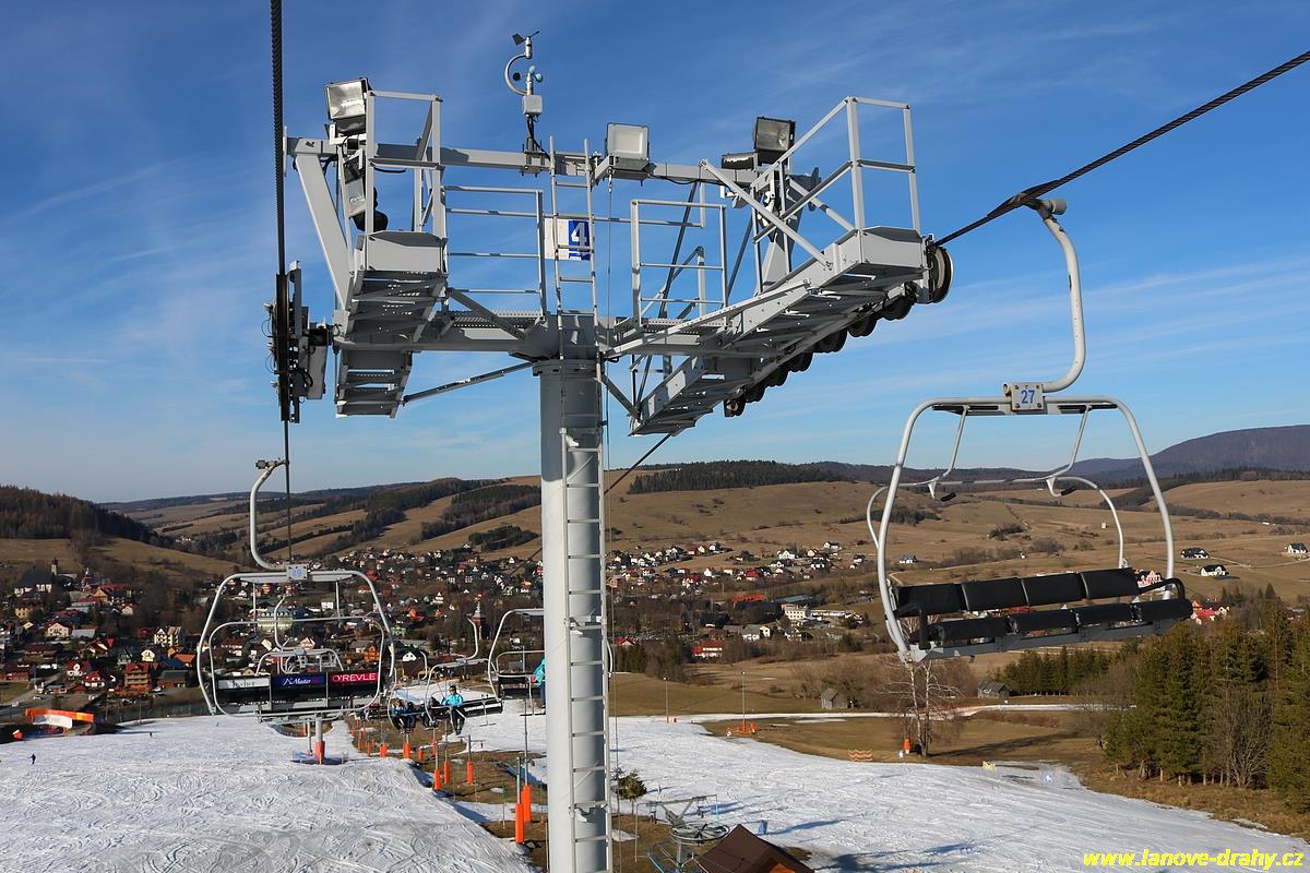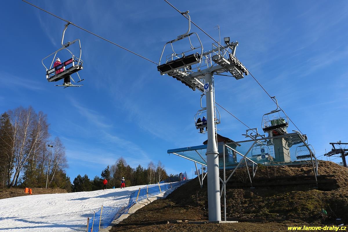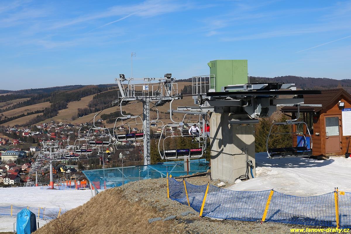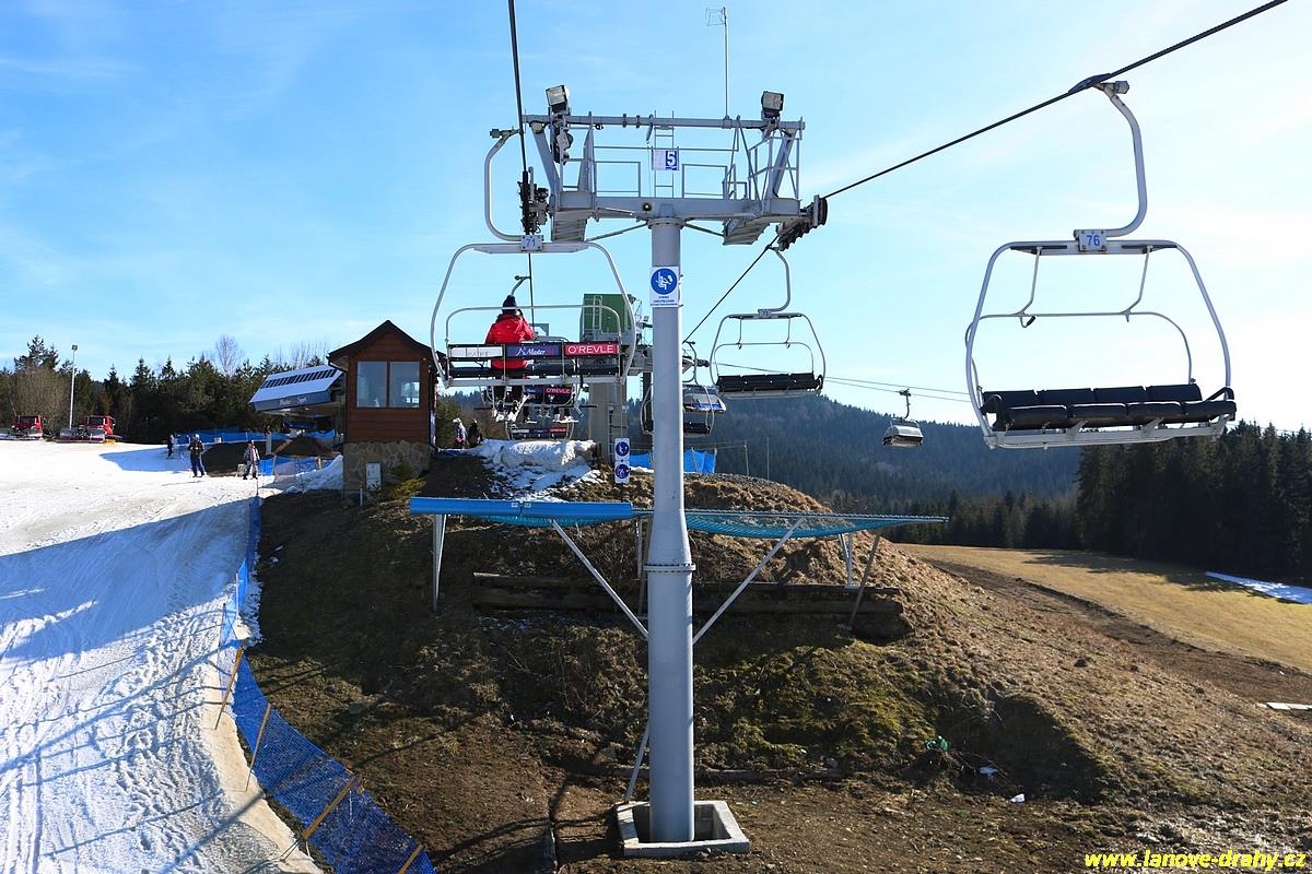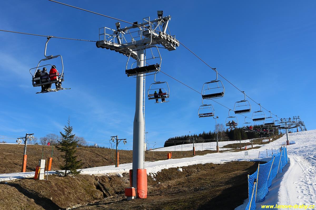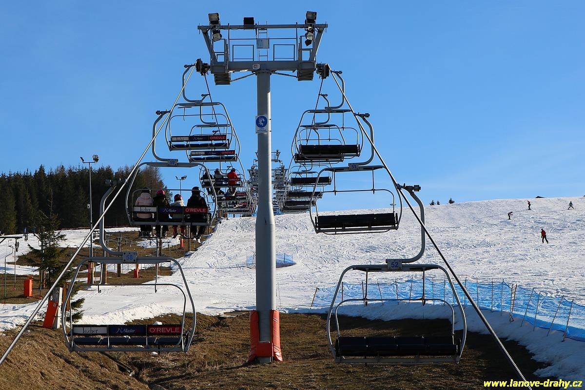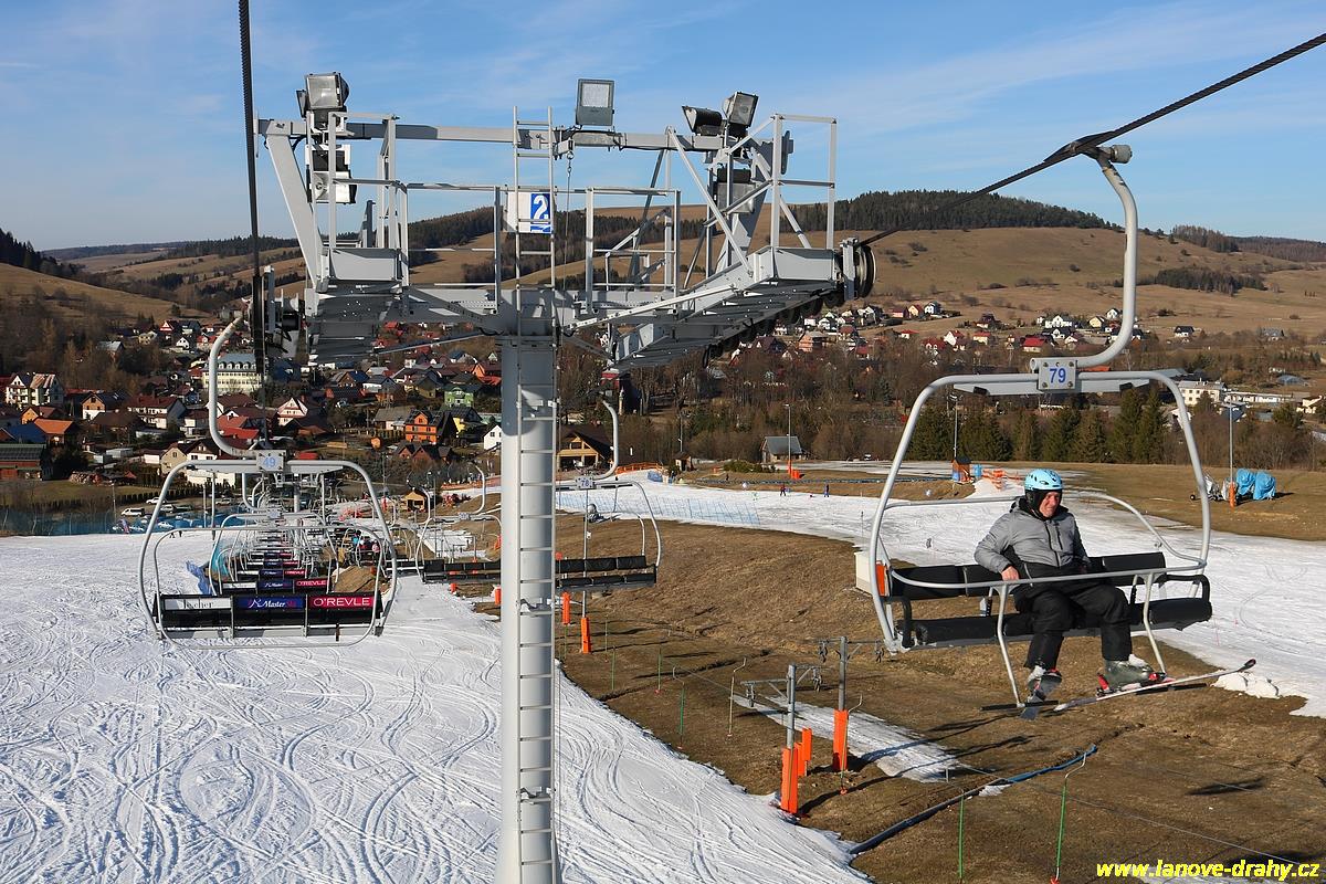 uchycením čtyřmístných sedaček a rozběhovým pásem |