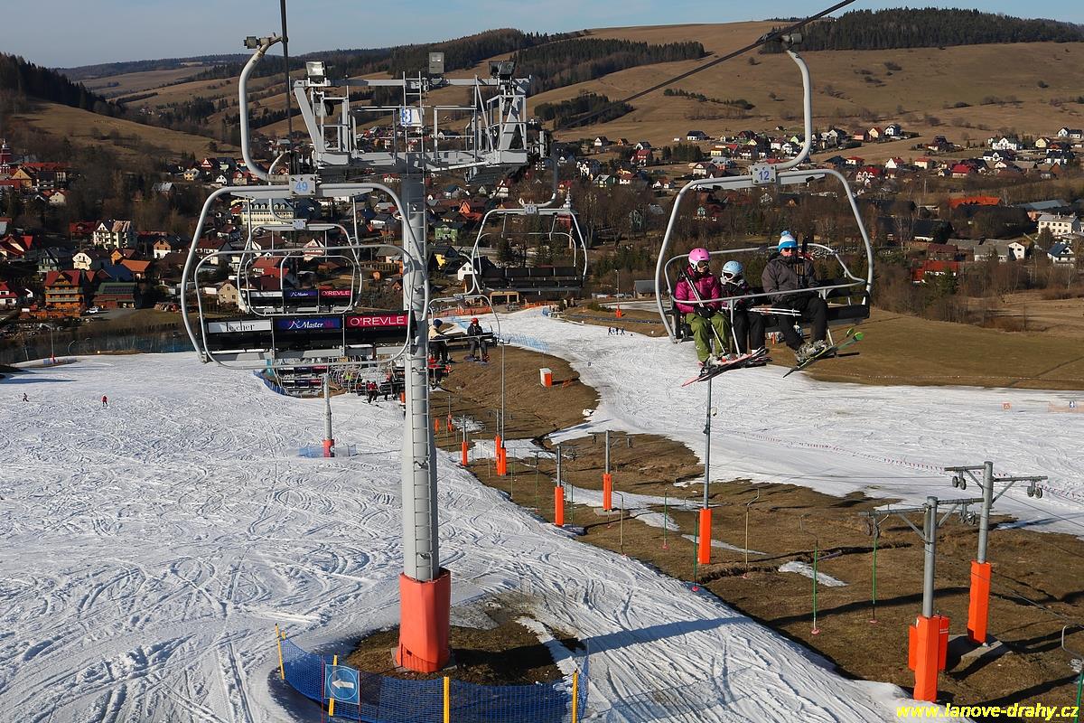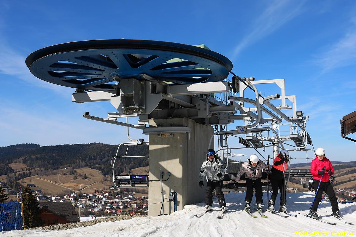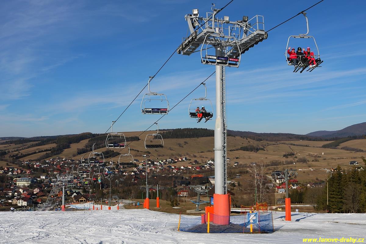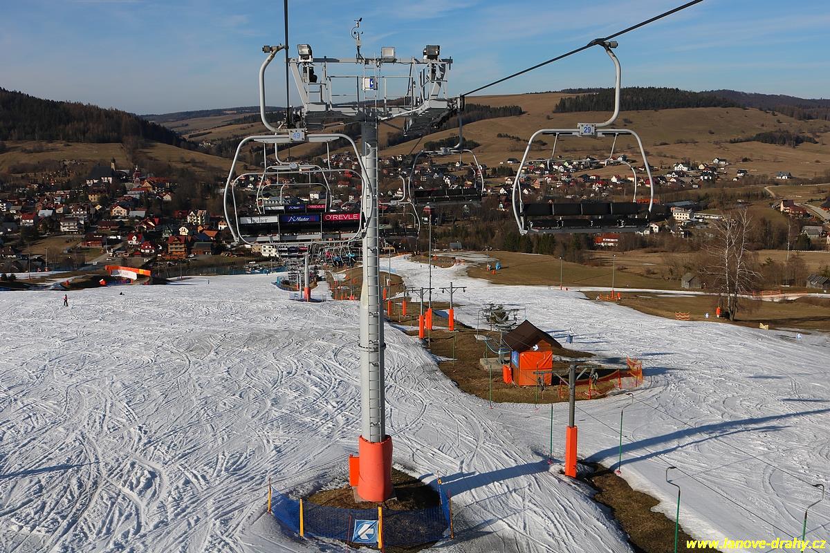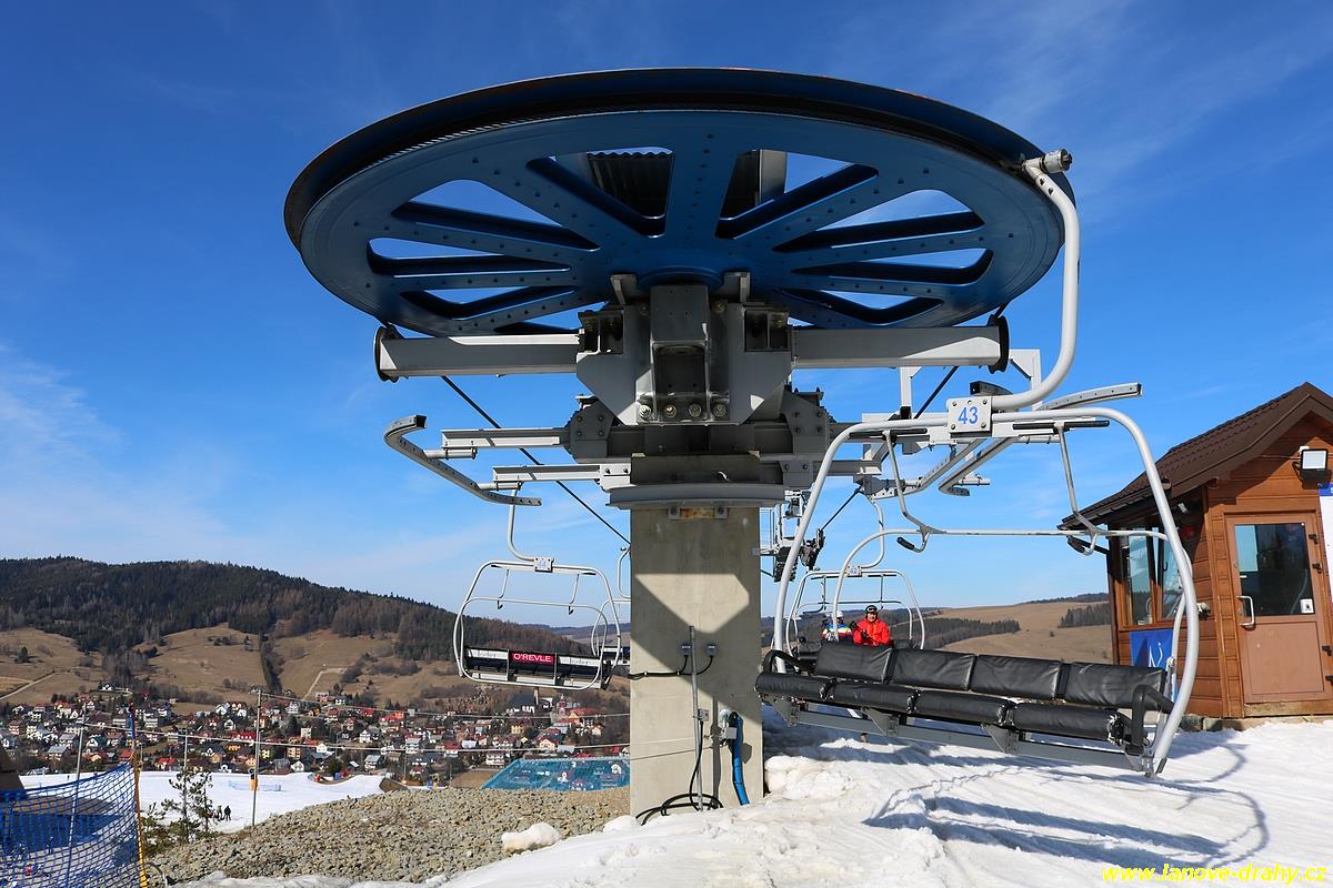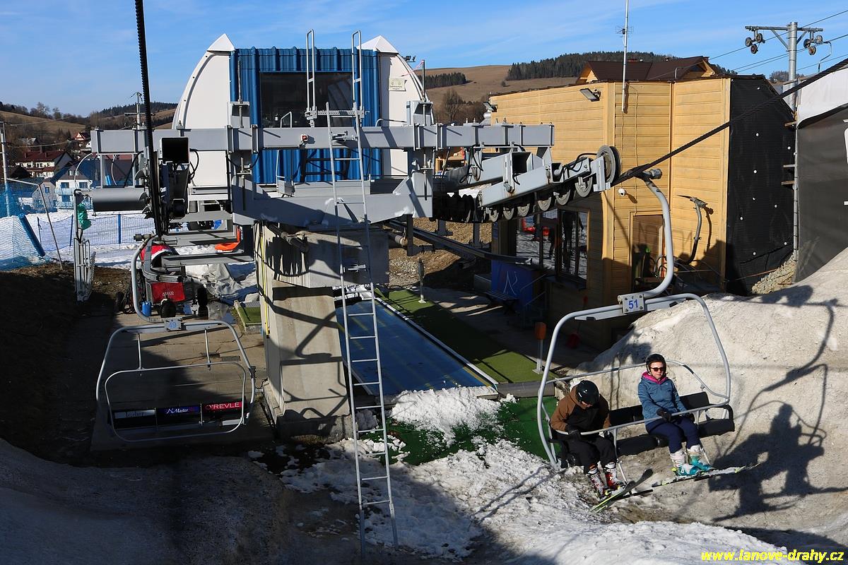uchycením čtyřmístných sedaček a rozběhovým pásem |