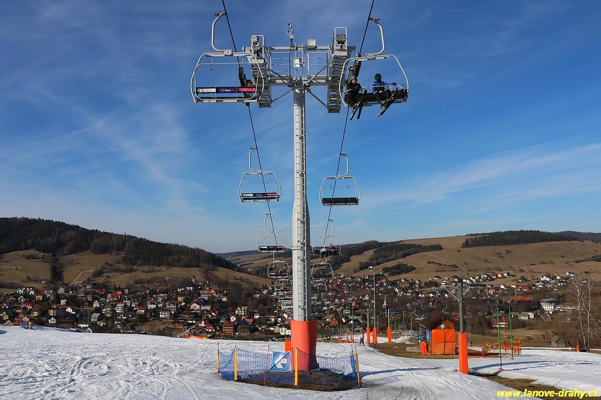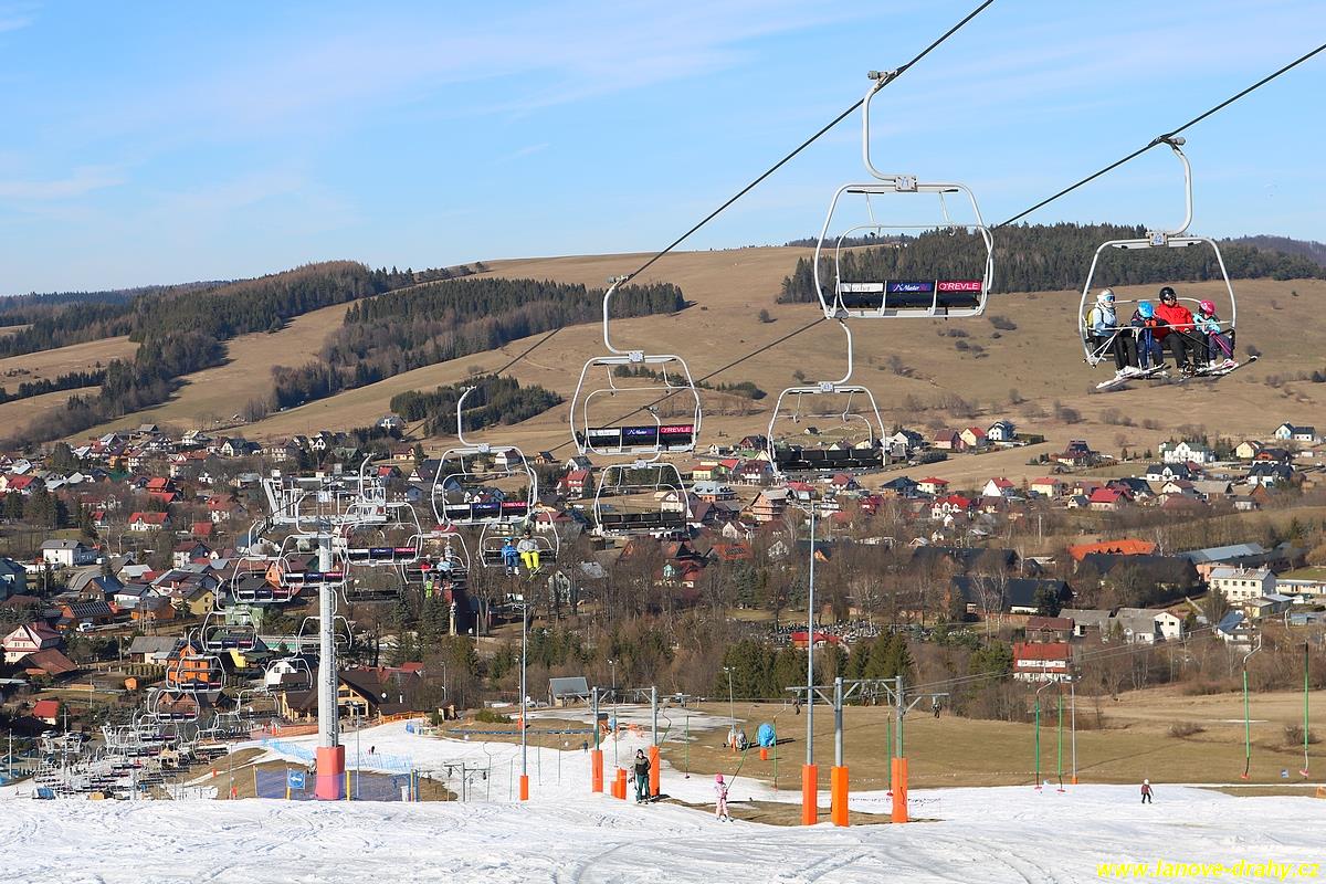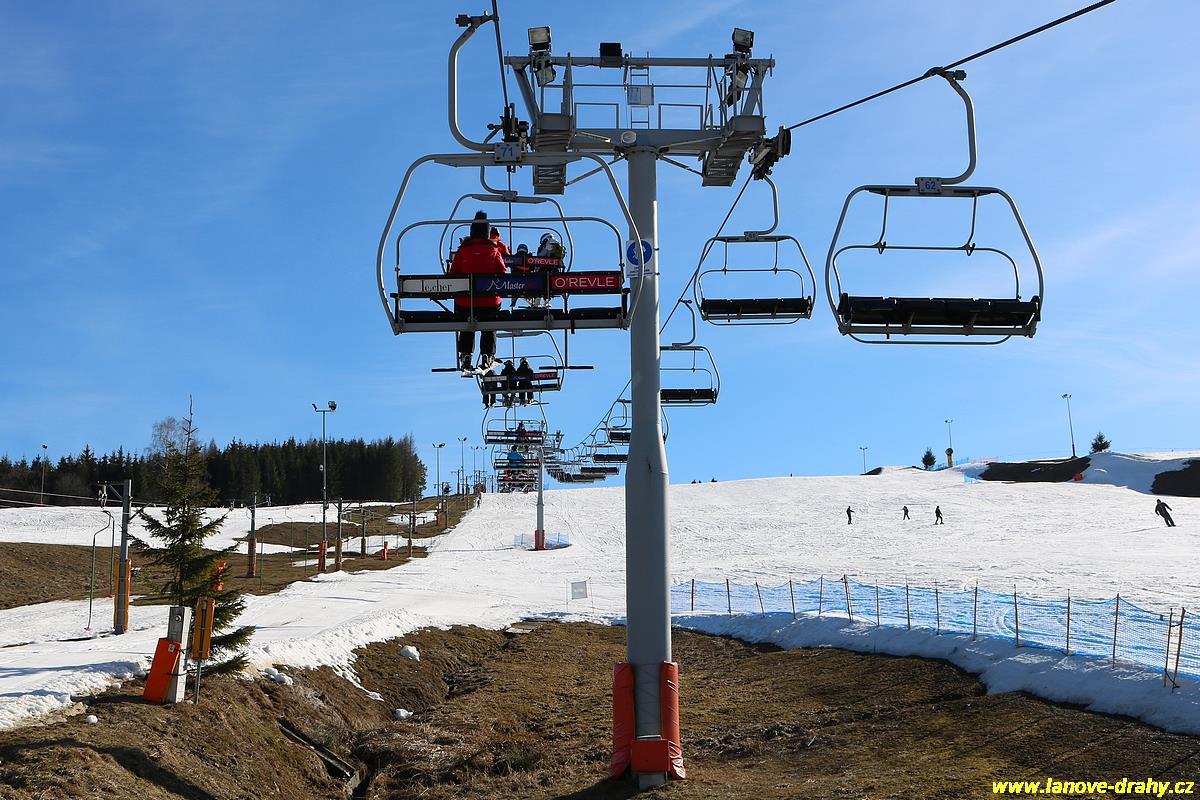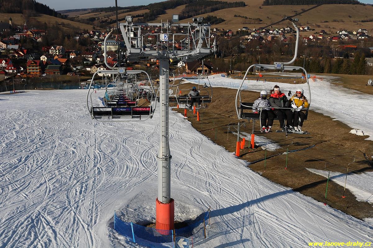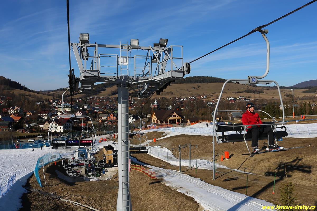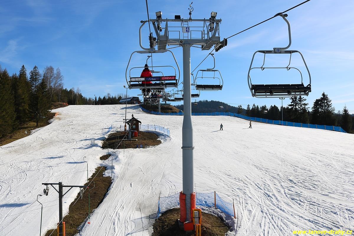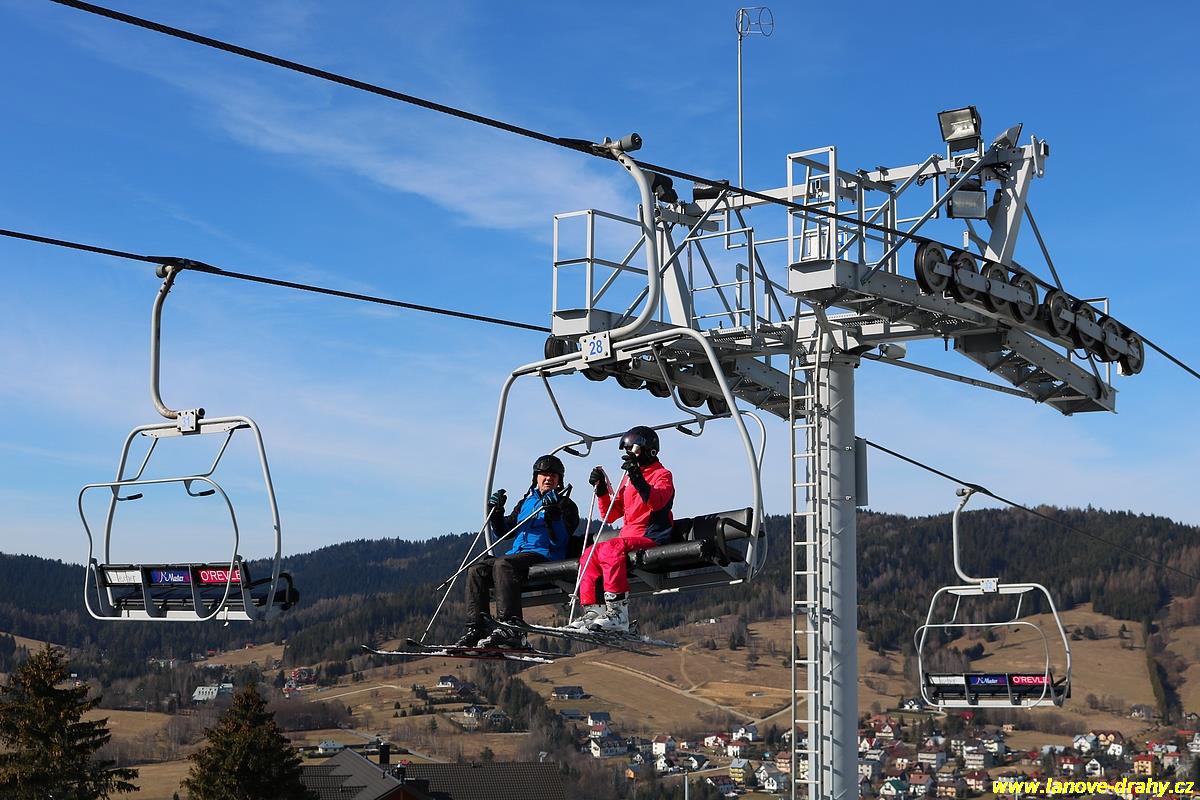 uchycením čtyřmístných sedaček a rozběhovým pásem |