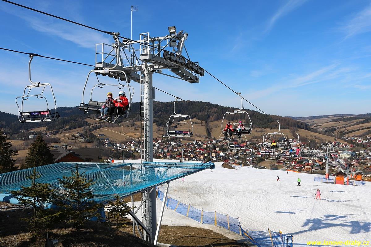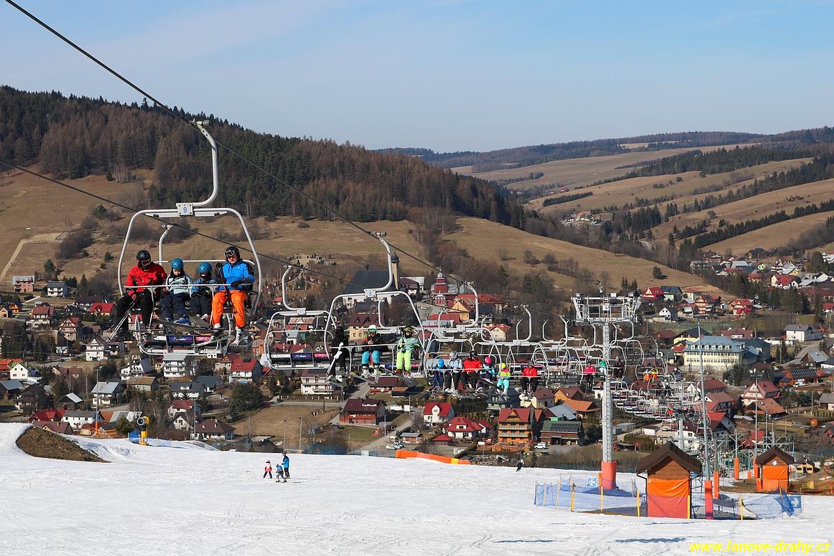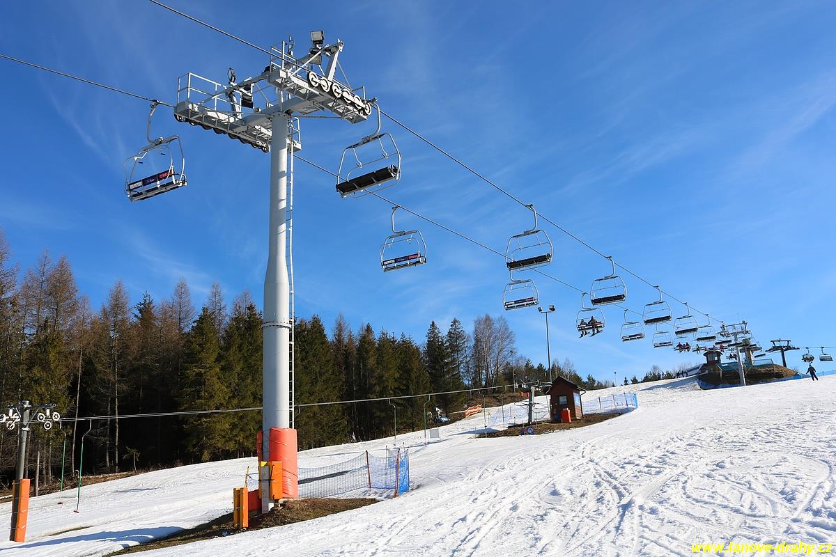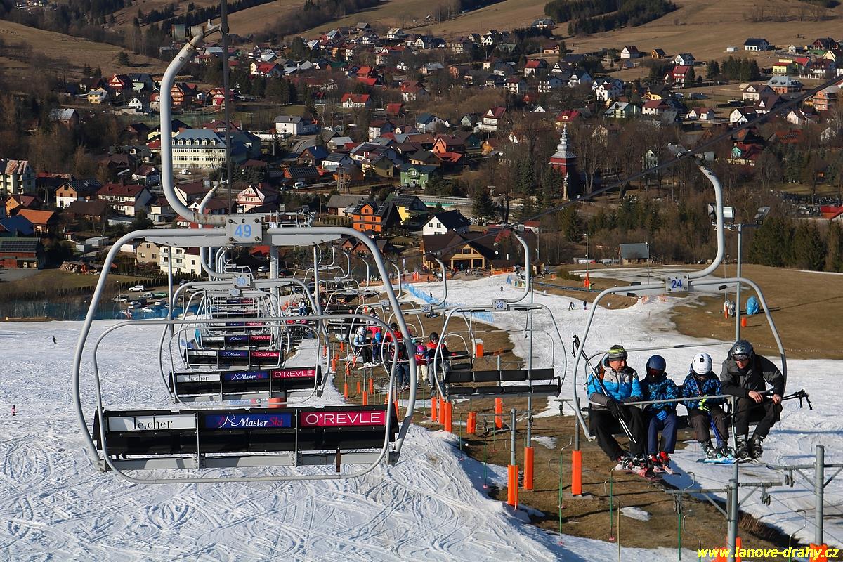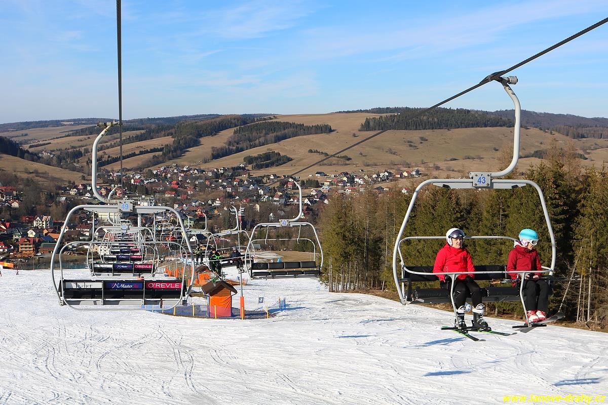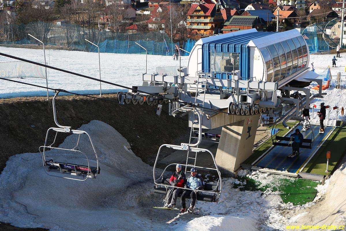 uchycením čtyřmístných sedaček a rozběhovým pásem |