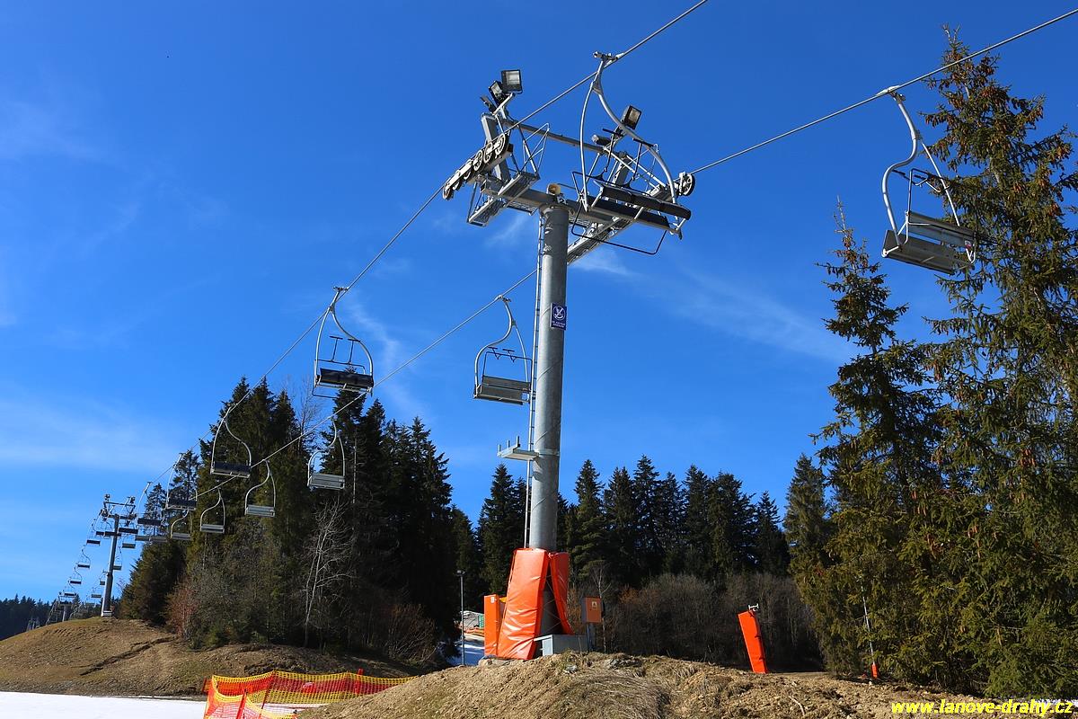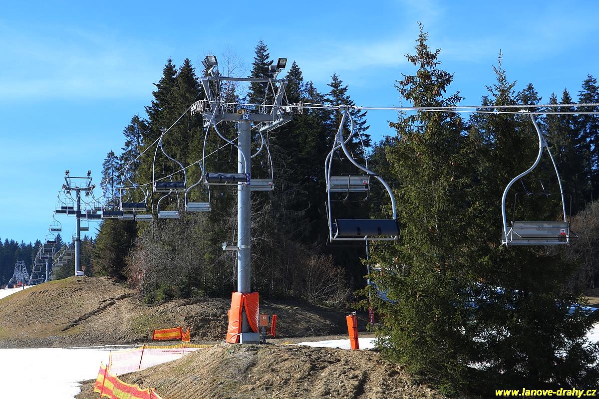 uchycením trojmístných sedaček |