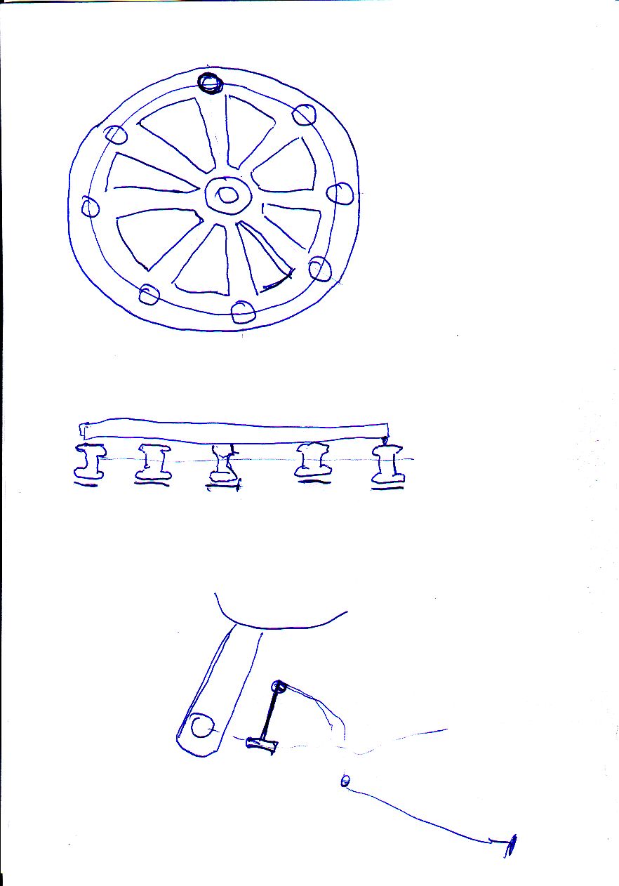 Nesla by treba udelat modifikace Bacocurve cca podle nakresu, kdy by na vodorovnem lanaci smerem dolu byly relativne uzke rolny na samostatnych loziskach, pano by slo pres ne ne tedy presne do kruhu ale lomene, kdyz bezi jen lano, vicemene by se prootacely jen tyhle rolny a lanac by stal, a kdyz prijede unaces tak zapadne mezi rolny o jednu se opre a protoci si cely lanac a zase to z toho vyseku opusti?