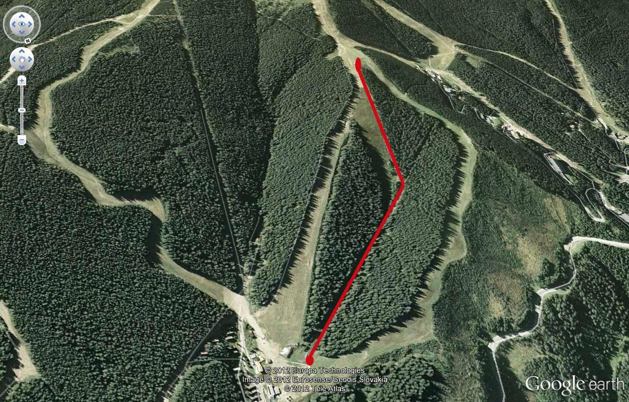 Trasa vleku byla se zalomením. 1 část byla rovinka s mírným převýšením. 2 část, prudký kopec kolem 50%.