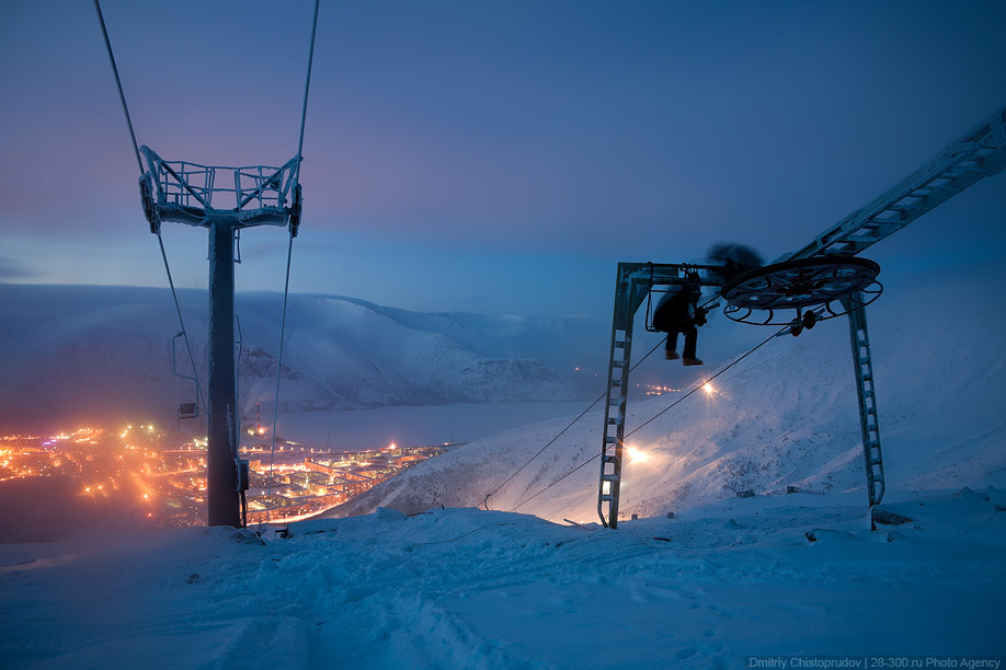 Tady jsou fotky kotvoveho vleku Transporta v Kirovsk SKI, v Rusku.