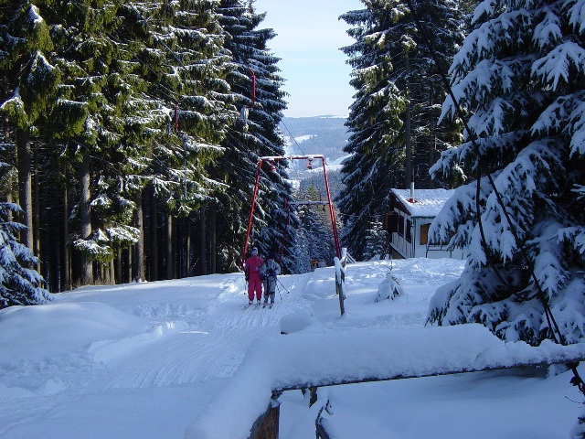 , délka vleku 1200m, převýšení 260m. Strojovna je klasicky dole, v boudě, na trati je snad 16 klasických bránových podpěr, unašeče původní, donedávna s dřevěnými sedáky, dnes plastové na původních tyčích. Vlek byl v dost špatném stavu, na což všichni nadávali, letos byla novým provozovatelem provedena generálka, prý jaká nebyla provedena 20 let. momentálně je tam přes 80 cm sněhu( 2 sjezdovky 1200 a 1400m otevřené), no víc info a fotky najdete na