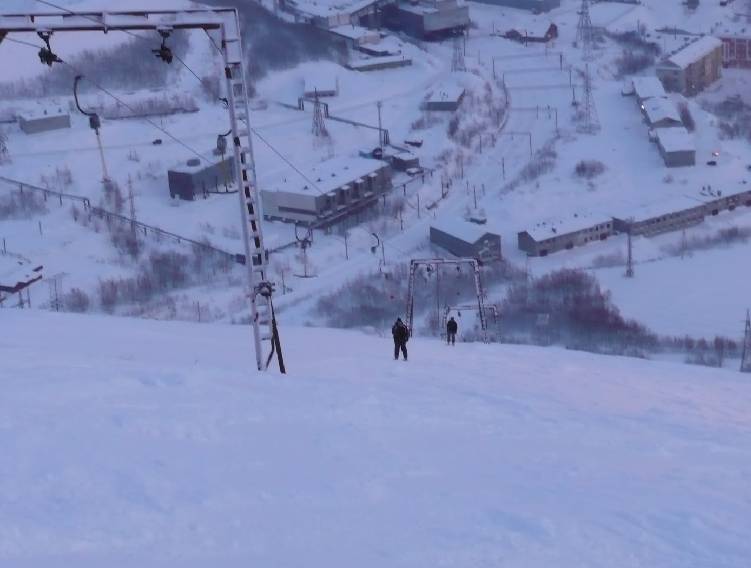 Tady jsou fotky kotvoveho vleku Transporta v Kirovsk SKI, v Rusku.