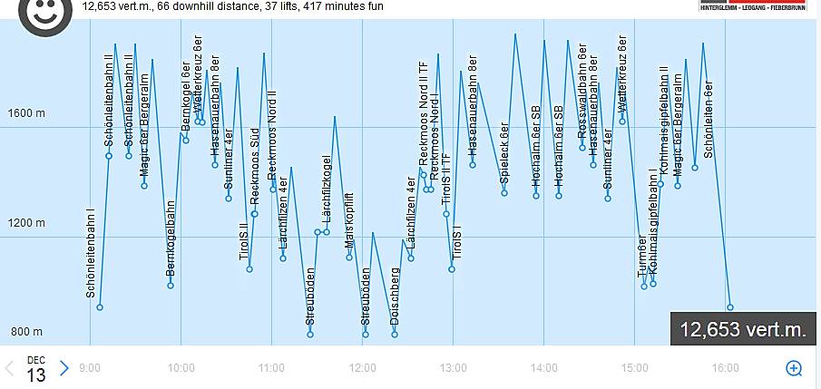 Den 1.: Projety jižní svahy nad Saalbachem a Hinterglemmem a propojení do Fieberbrunnu.