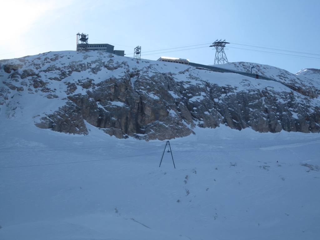 A pohled zpět nahoru, krásný svah, ale bohužel nedostatečně kapacitní lanovka.