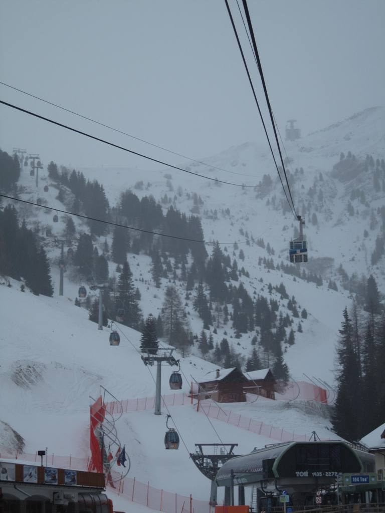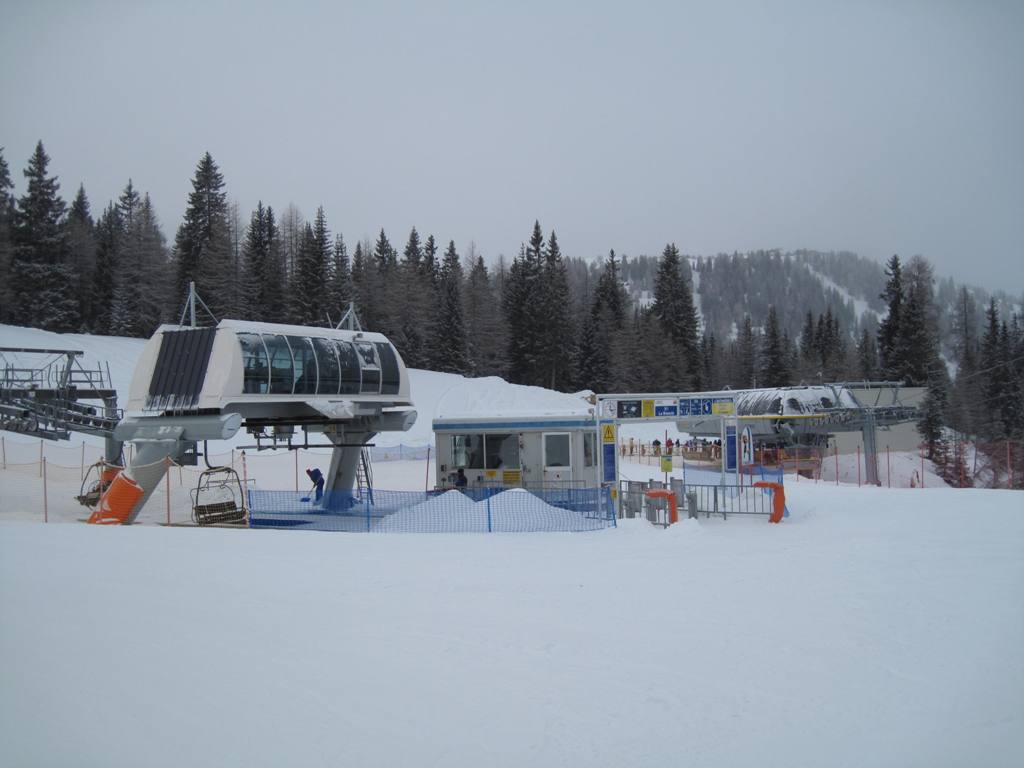 Dvousedačka Portados (výrobce Nascivera) z Arabby, bohužel po zrušení navazující dvousedačky Carpazza už není možnost pokračovat odtud směrem na Belvedere. Musí se využít kabin.