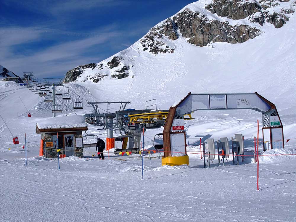 Poznámka: Dolní stanice lanovky Plan Maison (2555 m.n.m.) (návaznost Fornet a Bontadini směr Zermatt přes Theodulpass)