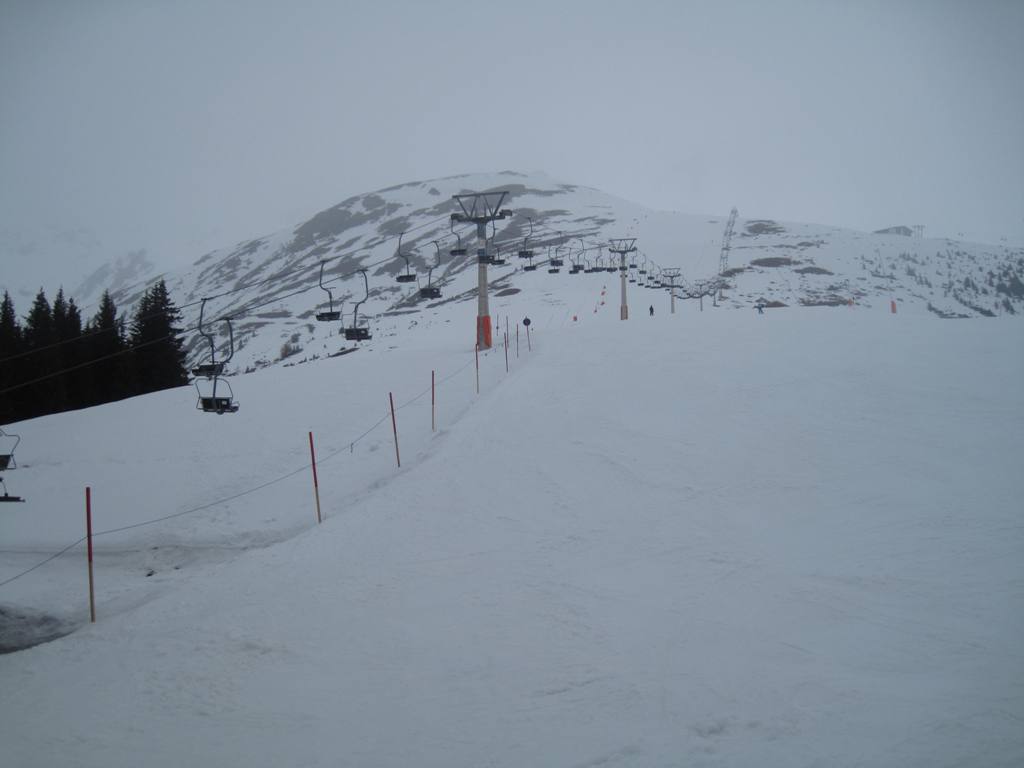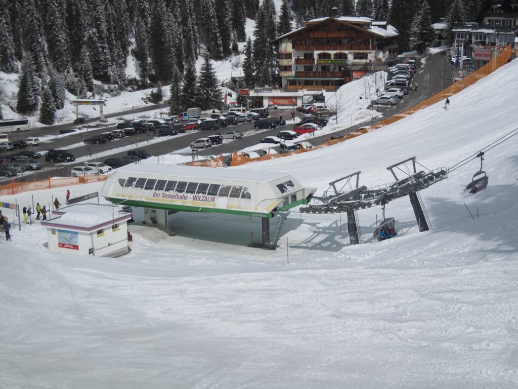 trasa lanovky Horbergbahn (Doppelmayer), kterou jsme se do areálu dostali, ski route do údolí byla již pro nedostatek sněhu zavřená