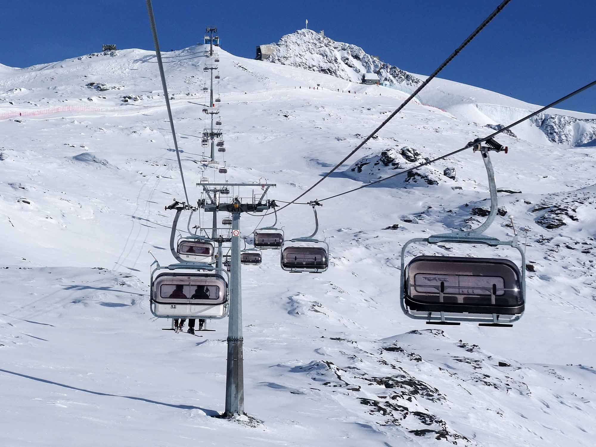 Poznámka: Pohled z úseku lanovky Fornet na navazující Bontadini, která vede na Theodulpass (3301 m.n.m.).