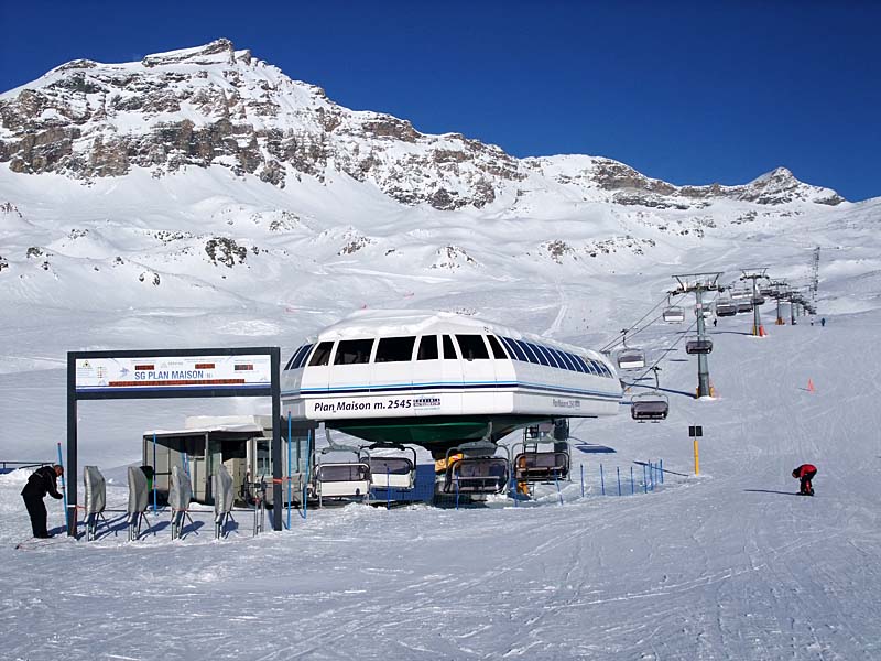 Poznámka: Dolní stanice lanovky Plan Maison (2555 m.n.m.) (návaznost Fornet a Bontadini směr Zermatt přes Theodulpass)