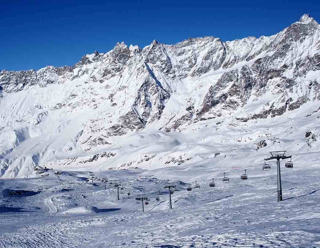 Zermatt: Luxusní středisko, nádherné, dlouhé, členité a i strmé sjezdy. Jen nepříjemný přejezd extrémně dlouhými kotvami z Trockener Steg na Plateau Rosa, v tom mrazu to bylo o život, a dlouho to trvalo. Alternativou byl z Trockener Steg výjezd kabinou na Klein matterhorn a sjezd z vrcholu do Cervinie, ovšem v -20 to téměř nešlo a jeden den, kdy bylo -28, zakázali sjezd na lyžích.
