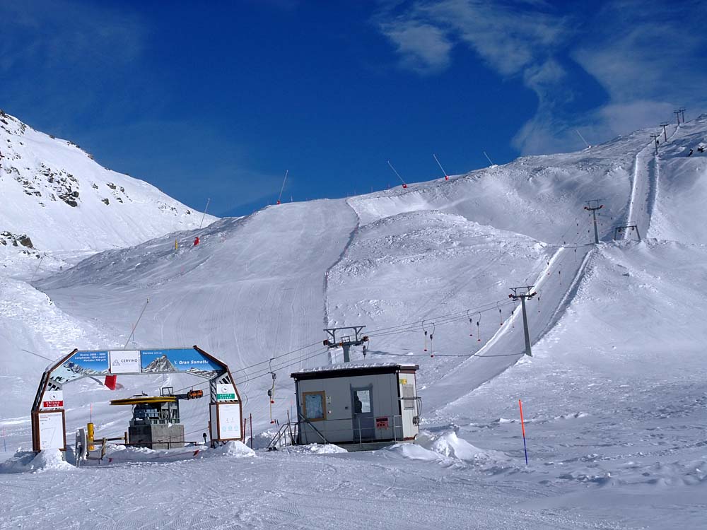 Poznámka: Spojovací vlek "Gran Sometta" areálů Valtournenche a Cervinia.