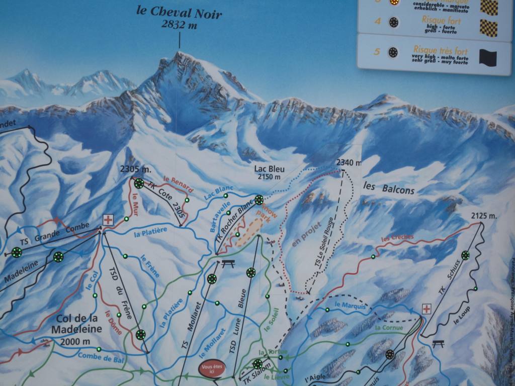 a nakonec mapa, kde je znázorněna "nová" lanovka Soleil Rouge, která by se měla začít stavět v létě, použita bude ex TSF4 Lune Bleue