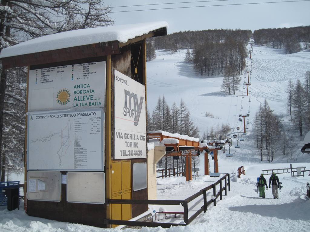 Jedná se o menší lyžařské středisko v Itálii, které je známé především díky olympiádě v Torině v roce 2006. V Pragelatu se nachází skokanské můstky a zároveň bylo dějištěm běžeckých závodů. Areál leží cca 100 km od Torina nedaleko známé lyžařské oblasti Via Lattea (Sestriere, Sauze D´Oulx, San Sicario, Claviere + Montgenévre). Pragelato jsem zvolil jako alternativní program při stávce vlekařů ve Via Lattea. Areál disponuje 35 kilometry sjezdových tratí všech obtížností, které jsou obsluhovány jednou dvojsedačkou a třemi vleky. Zároveň se v areálu nachází další sedačka a vlek, které ovšem již nejsou provozovány. Celodenní skipas stojí 22 EUR, odpolední 20 EUR. Areál byl prakticky prázdný, kromě naší skupiny v něm lyžovalo pouze pár dalších návštěvníků. Vzhledem k výpadku elektřiny po cca dvou hodinách jsme lyžovali zadarmo, protože nám bylo vráceno jízdné. Naštěstí jsem byl při výpadku elektřiny na vleku a ne na sedačce takže jsem se vyhnul záchranné akci. Někteří lyžaři byli na sedačce přes hodinu, než byli evakuováni.