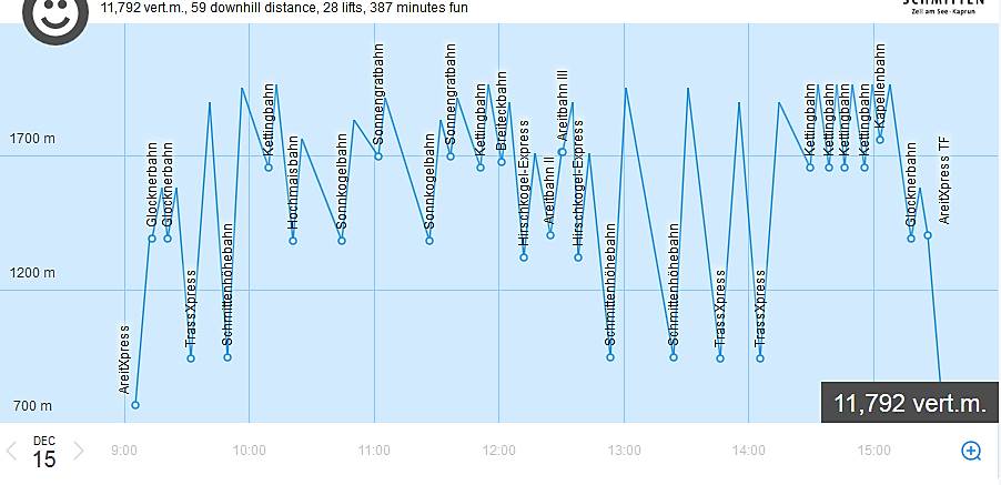 Poznámka: Horní část trasy Schmittenhöhebahn