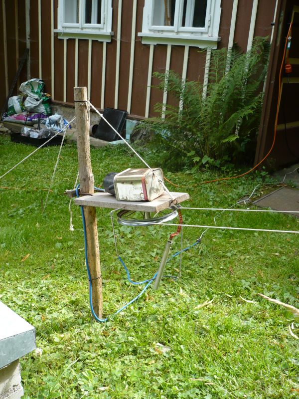 Tady jsou relativní pojmy "doma" i na "zahradě" :) Vlek je na našem pozemku hned za barákem, skála, ze které lanovky vede (loňskou sezóny vedla) je rovněž na našem pozemku, ale LD překračuje bývalou cestu (dnes pěšina) a dolní stanice už je za ní, na parcele souseda. Ale ploty tu v horách nemáme, takže je spíš potřeba sledovat, zdali je místo více či méně "na očích", a jestli zařízení nebude překážet. Při tom červnovém "Pohádkovém lese" bych chtěl lanovku umístit do středu obce, ale je to akce na jeden den, přes noc bych se bál to nechat takhle na očích. Stavba (pominu-li přivezení všech dílů) trvá cca hodinku, sklizeno může být do 30 min. Ty stanice se špatně přenáší jednomužně a práci při stavbě dá natažení lan a jejich vypnutí-je to věčné běhání nahoru a dolu.
