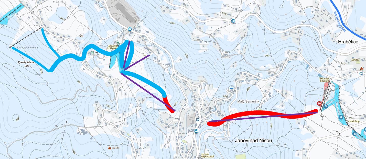 V této souvislosti připojuju návrh na rozšíření tohoto areálu, který by mohl vykazovat na okolí Brna velice slušnou celkovou délku sjezdovek 1 km.