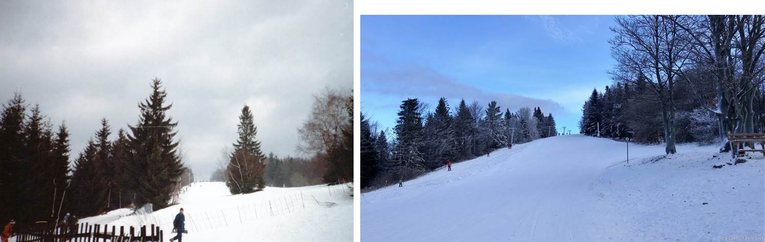 Na srovnání s letošní fotografií je patrné výrazné odlesnění svahu, kvůli kterému bude zřejmě definitivně