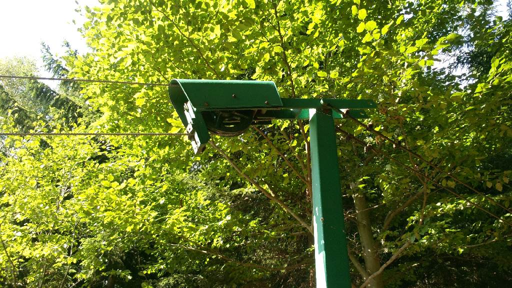 To si čoveče nemyslím z několika důvodů - opačný směr - museli by mít pravo i levostranné kotvičky, slabá konstrukce nádstavců ke kladkám, velmi malé kladky, pidi motor, lana jsou těsně nad sebou - při nárazovém zatížení by mlátili o sebe. A velmi podobně bylo posílání dolů děláno na Soláni. Jen se mi nepodařilo zjistit, jak to přesně fungovalo - údajně se to ale moc neosvědčilo....Ale kdoví, třeba to bylo na uplně něco jiného...
