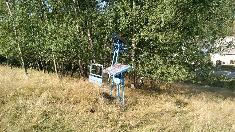 Podle mapy je u hasicsky zbrojnice vlek, je trochu videt i na streetview i na panorame seznamu. To je ten modry na fotkach, klasicka VL200. Na prvni pohled to takhle jezdit nemuze, chybi motor, tezko rict, v jakym stavu je elektroinstalace. Kabel z rozvadece k motoru je odstrizeny (ze by motor nekdo ukradl?) ale rozvadec nevypada jinak poskozene, jen stare. Lano je v pomerne slusnem stavu, pozikovane lec starsi, ale IMHO dobre, trasa neni prilis provesena (lano neni po cele trase na zemi i kdyz je bez podper). Louka ale neni posecena. Trasa http://mapy.cz/s/kJL9 odpovida zakresu na mape, 177m delka 57m prevyseni, docela kopec, dovedu si predstavit, ze si tam fine zajezdim. Skoda ho...