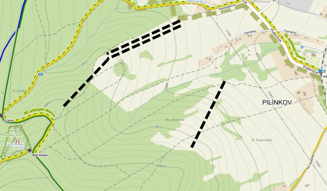 V okolí Liberce by stálo za prozkoumání, co zbylo z vleků nad Pilínkovem - rozmístění viz obr,