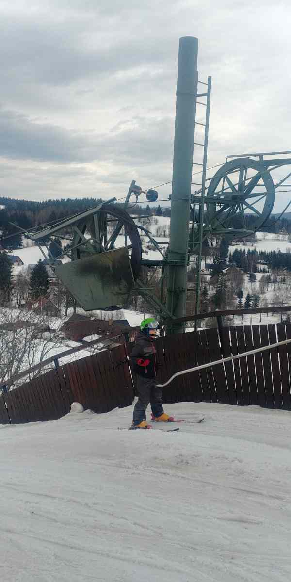 Severák v Jizerských horách, vlek "Zalomený" sjezdovka podle něj "Přemostěná". Podpěra 8
