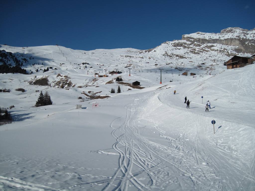 A pohled zpět nahoru, krásný svah, ale bohužel nedostatečně kapacitní lanovka.
