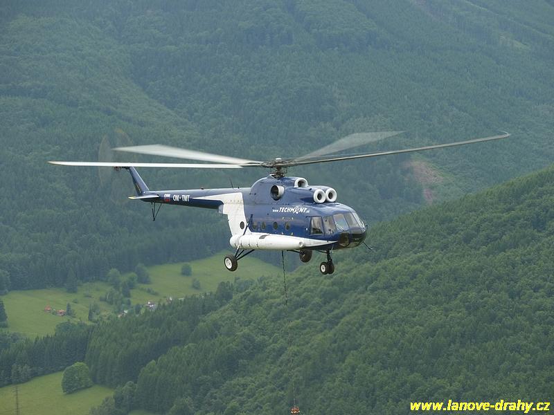 Sedačková lanovka Kouty nad Desnou - Dlouhé Stráně (montáž podpěr vrtulníkem)
